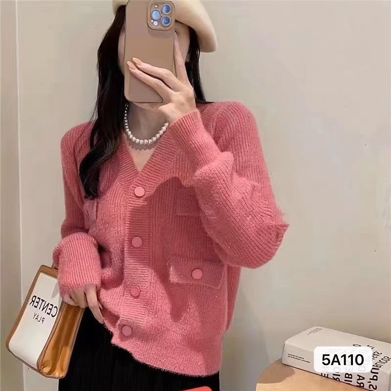 针织开衫女长袖百搭v领气质上衣 短款粉色毛衣2023开春新款外套女