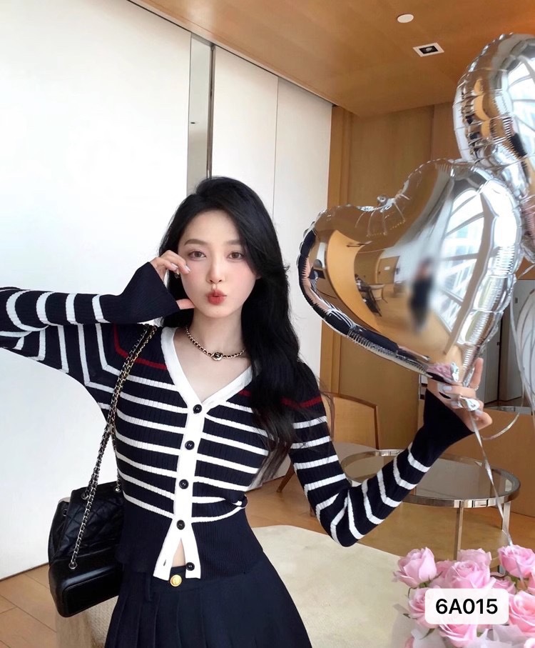 韩版撞色条纹显瘦针织开衫女 2023秋季新款百搭V领长袖打底衫上衣