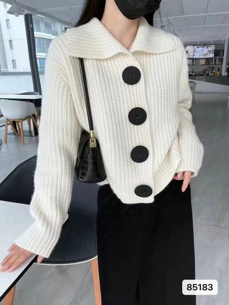 2023年早春新款女装开衫外套女上衣宽松韩版时尚大扣翻领针织毛衣