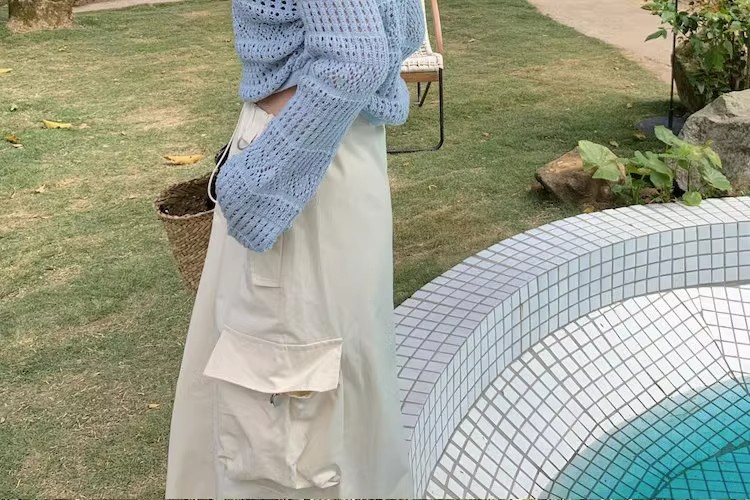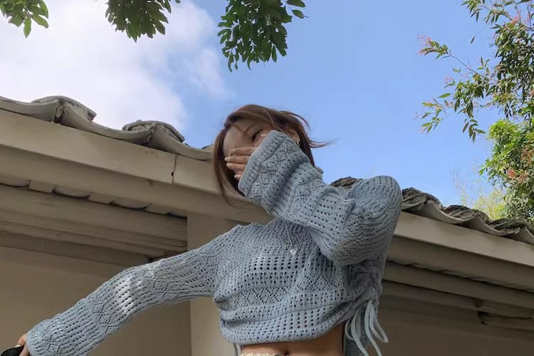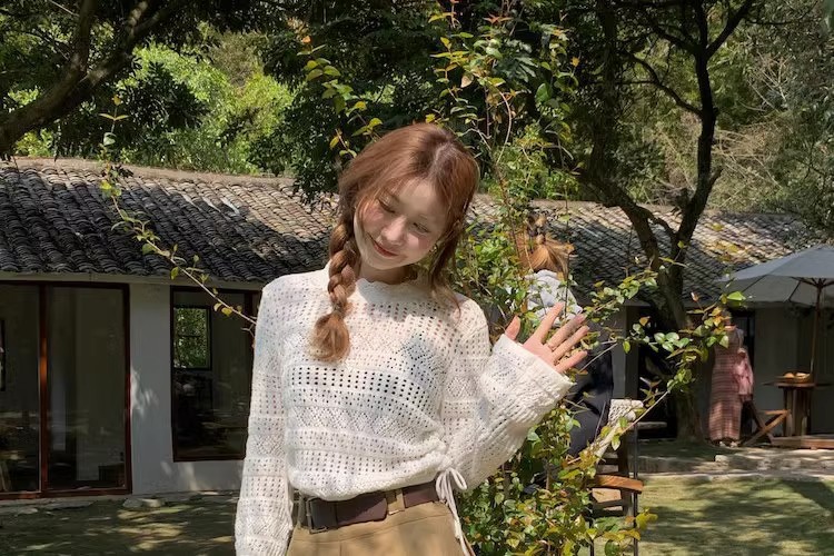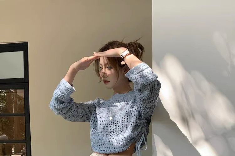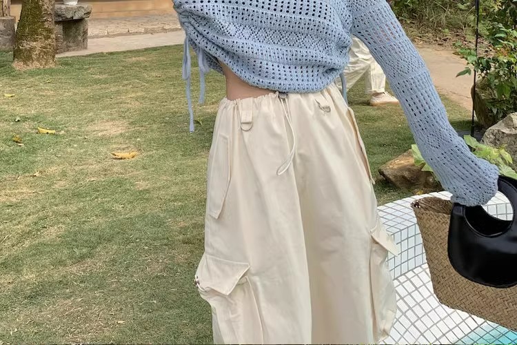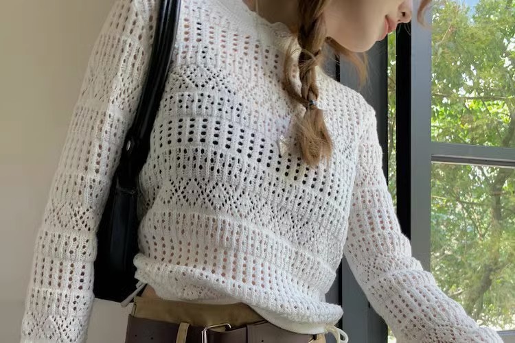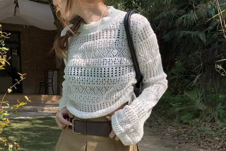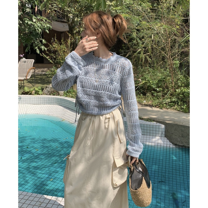 2023早秋新款复古针织重工甜美钩花镂空长袖防晒衫女抽绳上衣