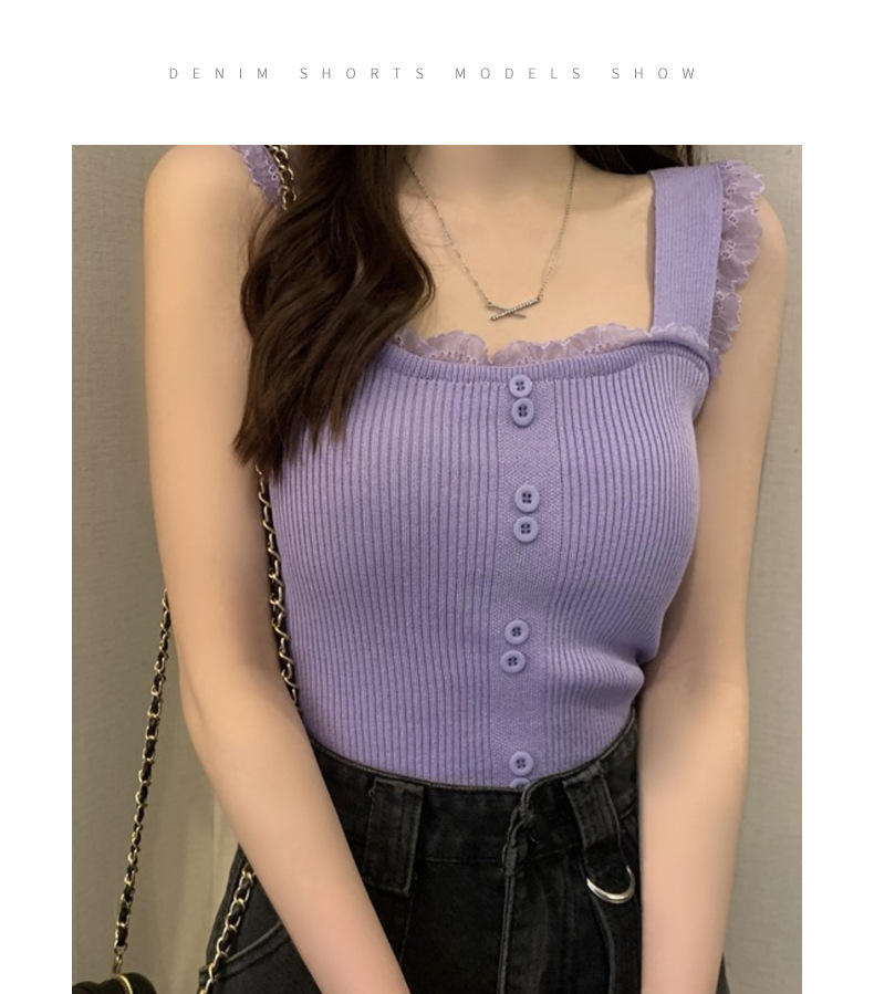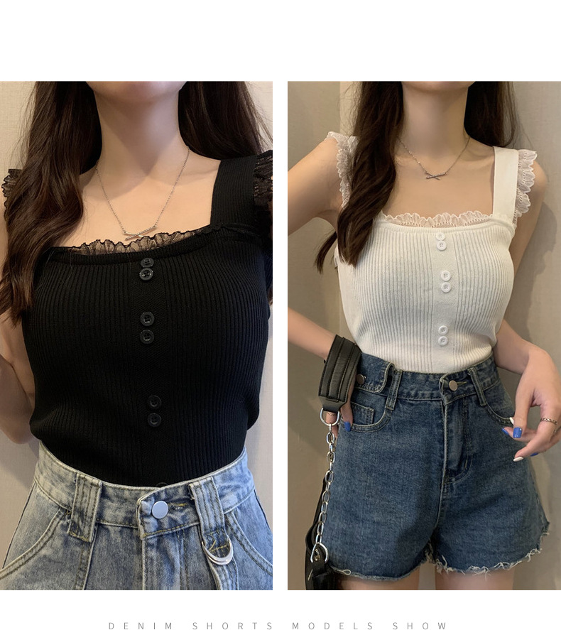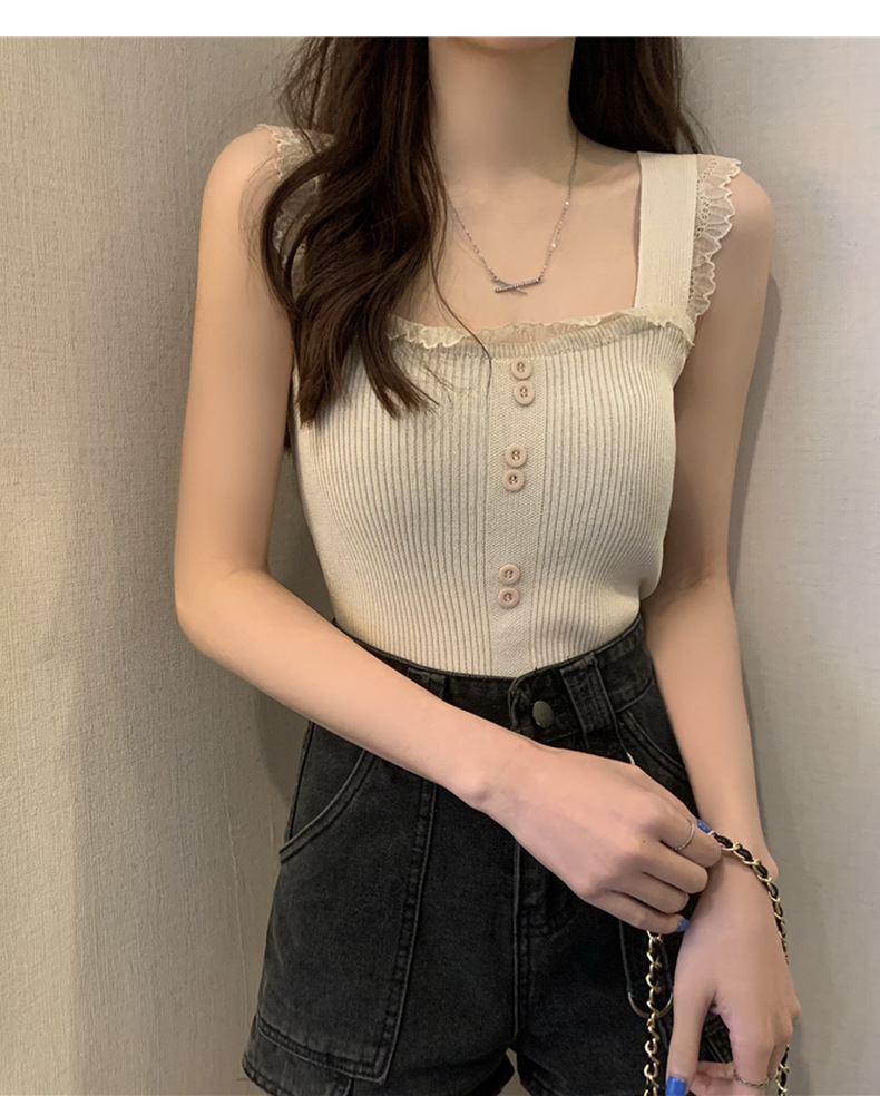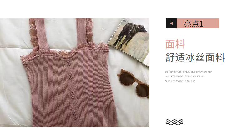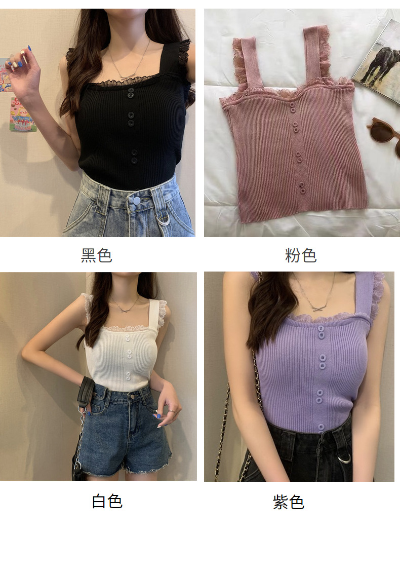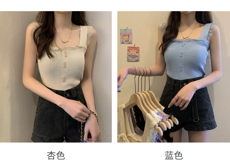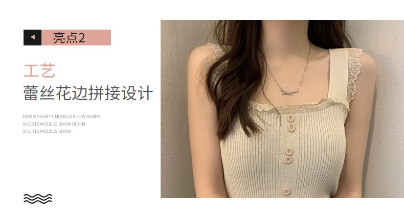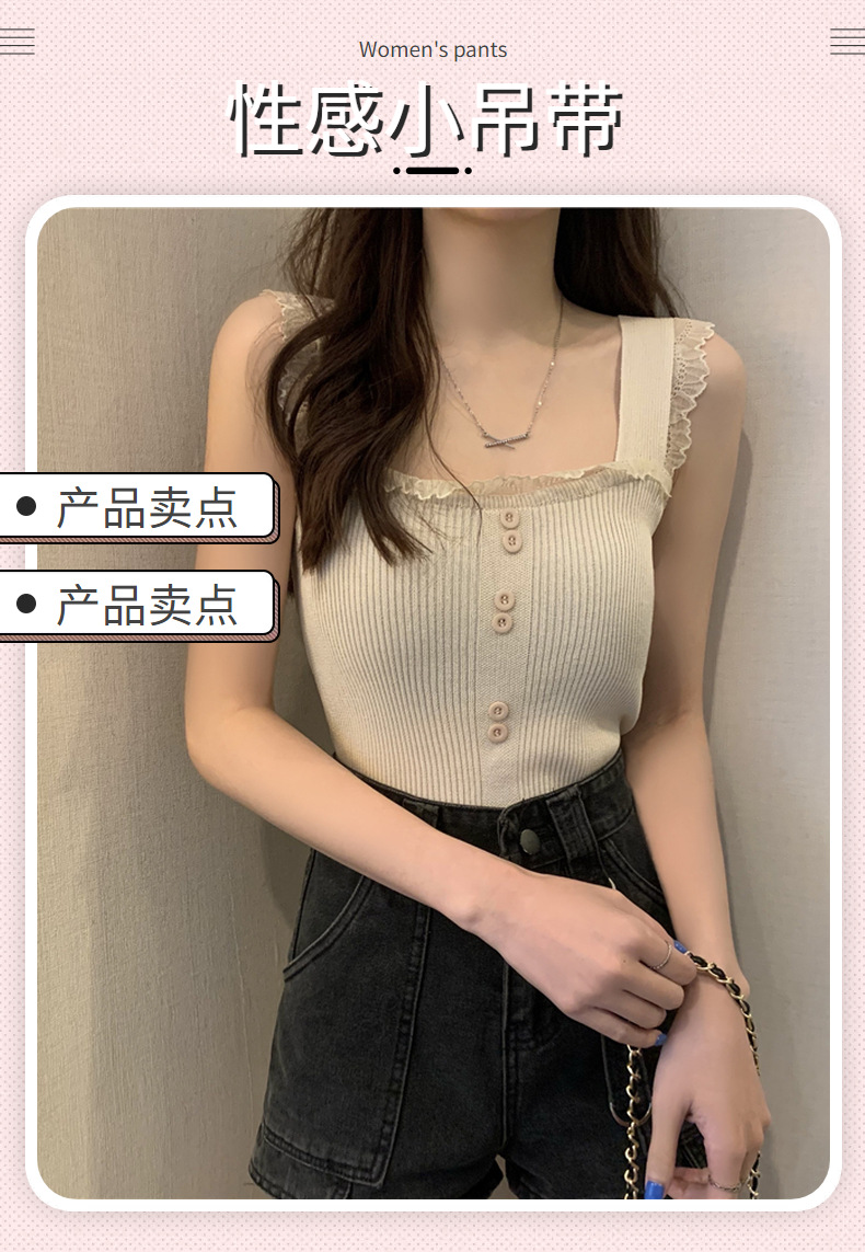 冰丝针织小吊带背心蕾丝拼接上衣女夏季小众设计感内搭打底修身潮