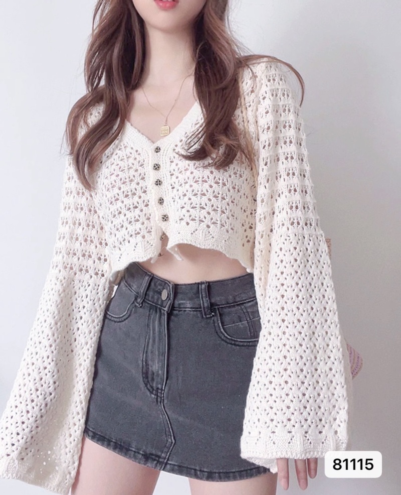 镂空V领针织喇叭袖纯欲风小衫ins网红风小清新千金感高街上衣夏季