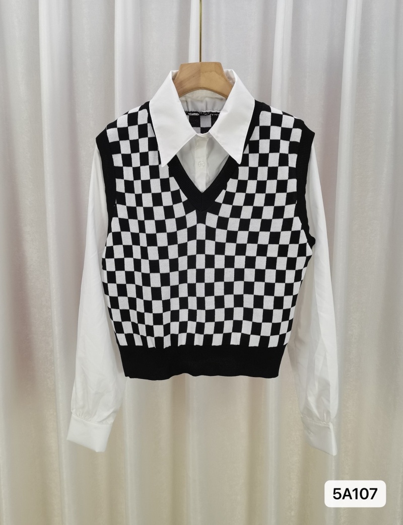 韩版网红辣妹穿搭上衣马甲纯欲气质小个子拼接棋盘针织背心上衣女