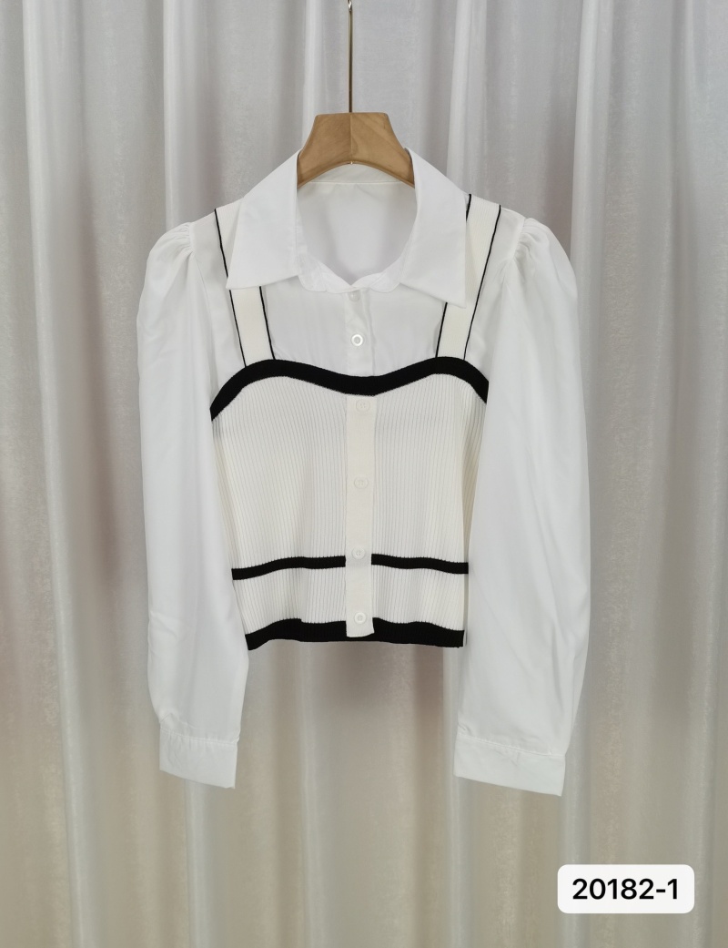 假两件针织背心拼接泡泡袖t衬衫 2023夏季新款设计感小众减龄上衣