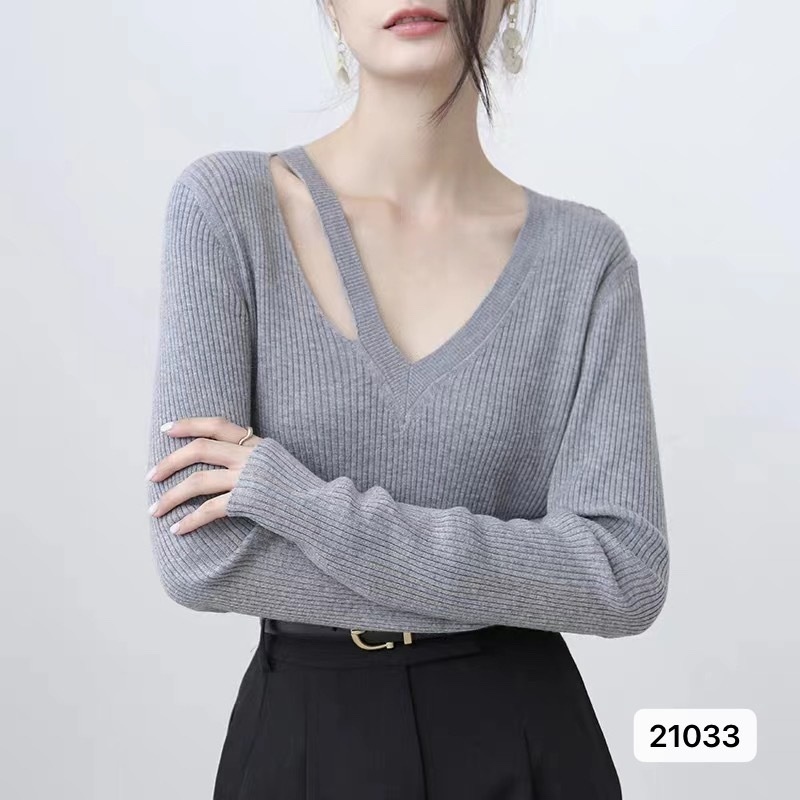 秋冬2023新款女装针织衫秋装v领 百搭小众上衣短款长袖毛衣打底衫