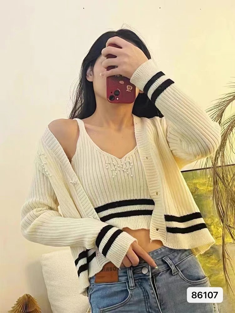 小个子短款长袖针织开衫女秋冬2023年新款韩版显瘦修身两件套淑女