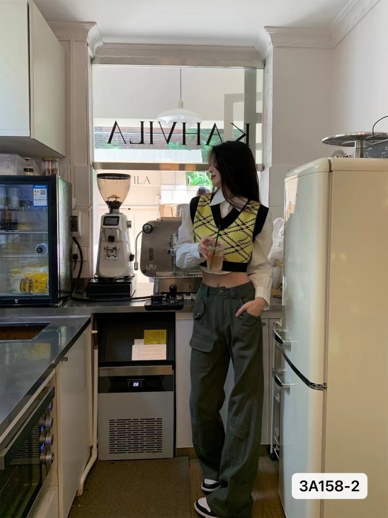 韩版网红辣妹穿搭上衣马甲纯欲气质小个子拼接棋盘针织背心上衣女
