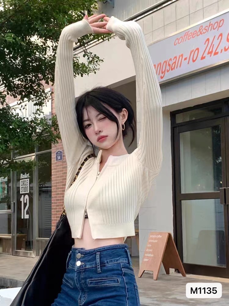 短款辣妹别致长袖针织衫秋冬新款修身设计感拉链上衣开衫外套女潮
