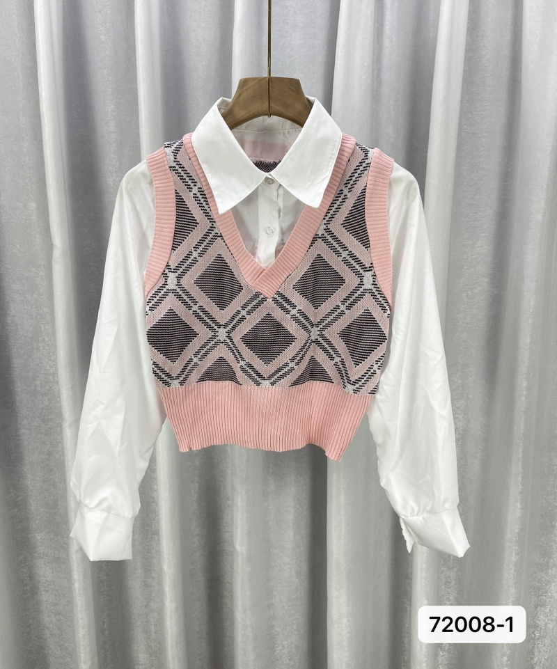 2023春秋V领菱格提花套头背心 学院风辣妹百搭显瘦复古马甲上衣女