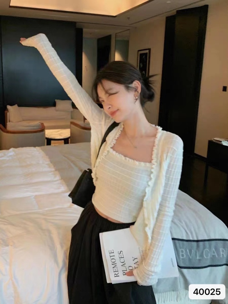 2023夏季新款木耳边纯欲短款吊带+ 开衫修身显瘦长袖针织上衣女潮