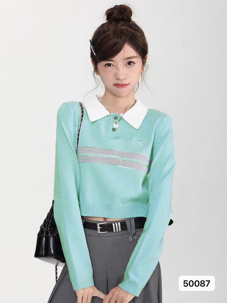 美式复古条纹针织衫女春秋新款毛衣设计感小众修身小个子短款上衣