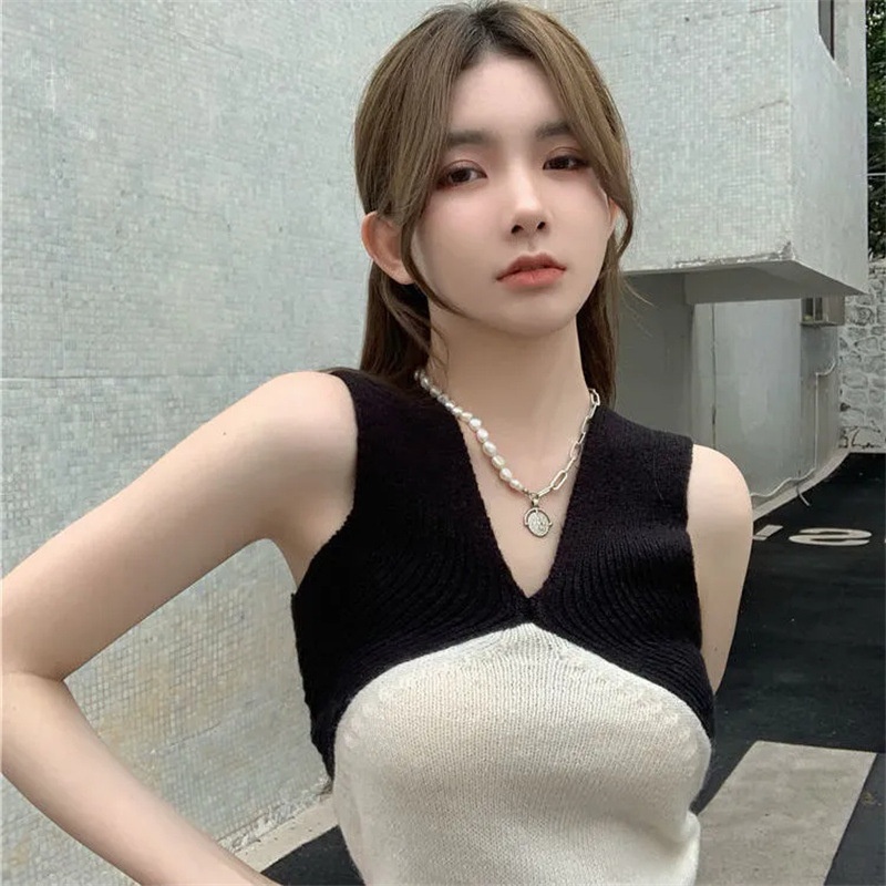网红ins超火撞色交叉针织背心打底外穿夏季款显瘦无袖辣妹上衣服