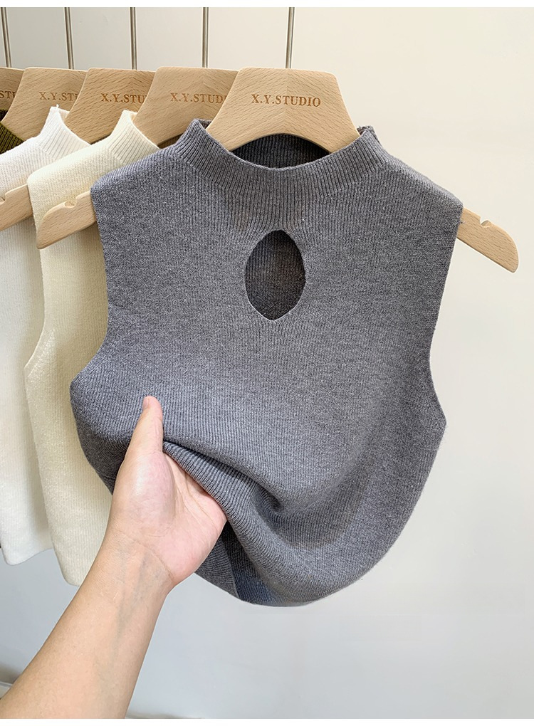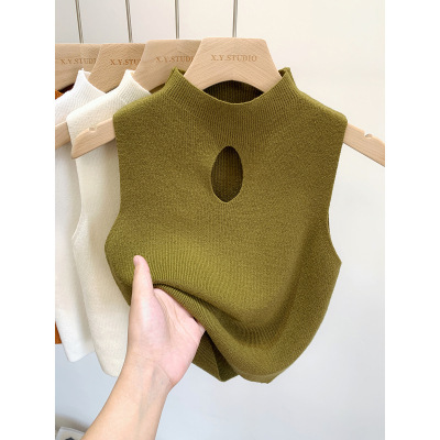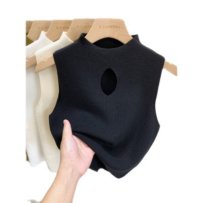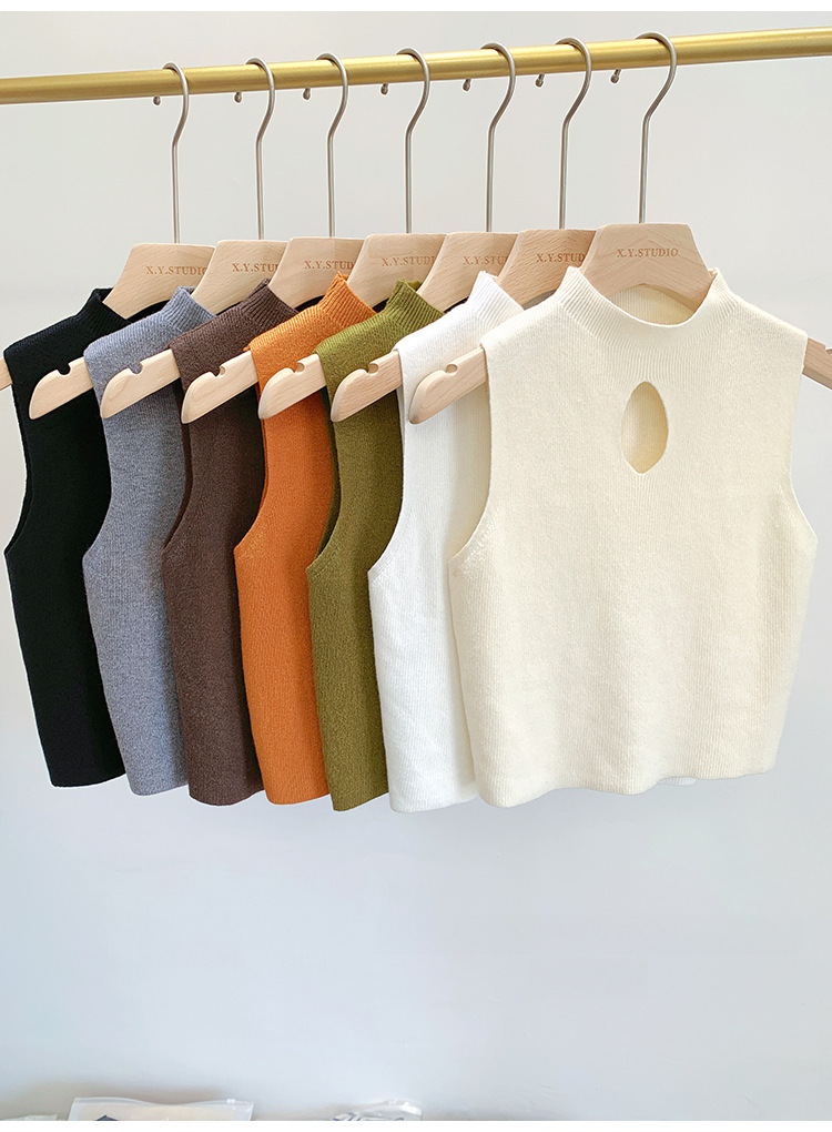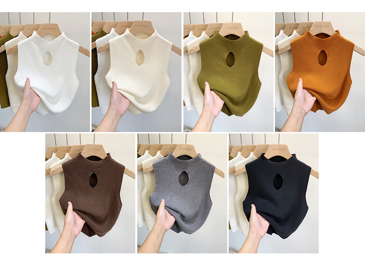 2023早春半高领镂空内搭新款纯色修身性感短款无袖上衣针织背心女