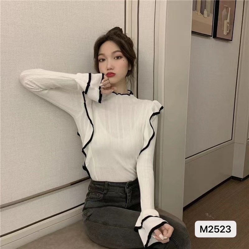 2023年春装新款小众设计感撞色长袖针织别致内搭打底衫上衣ins潮