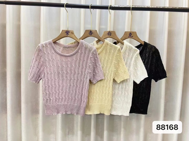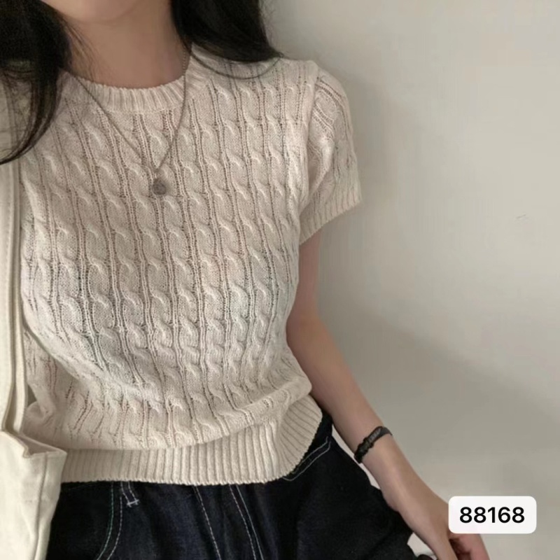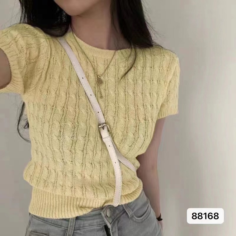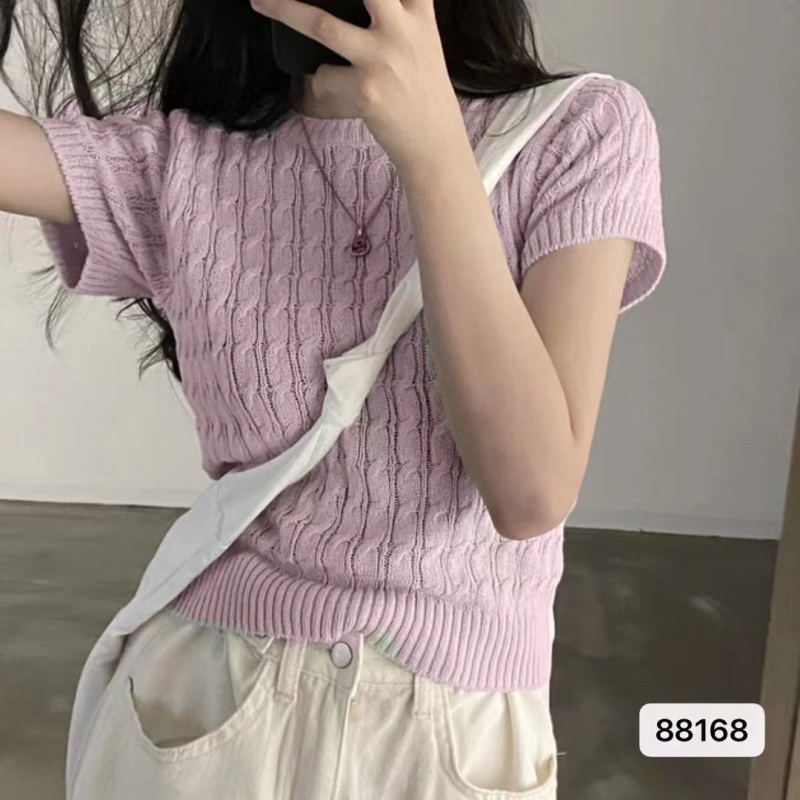 复古文艺2023夏季新款麻花辫圆领针织小衫内外穿搭打底Tt恤上衣潮