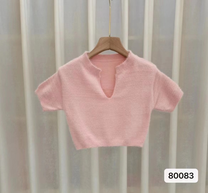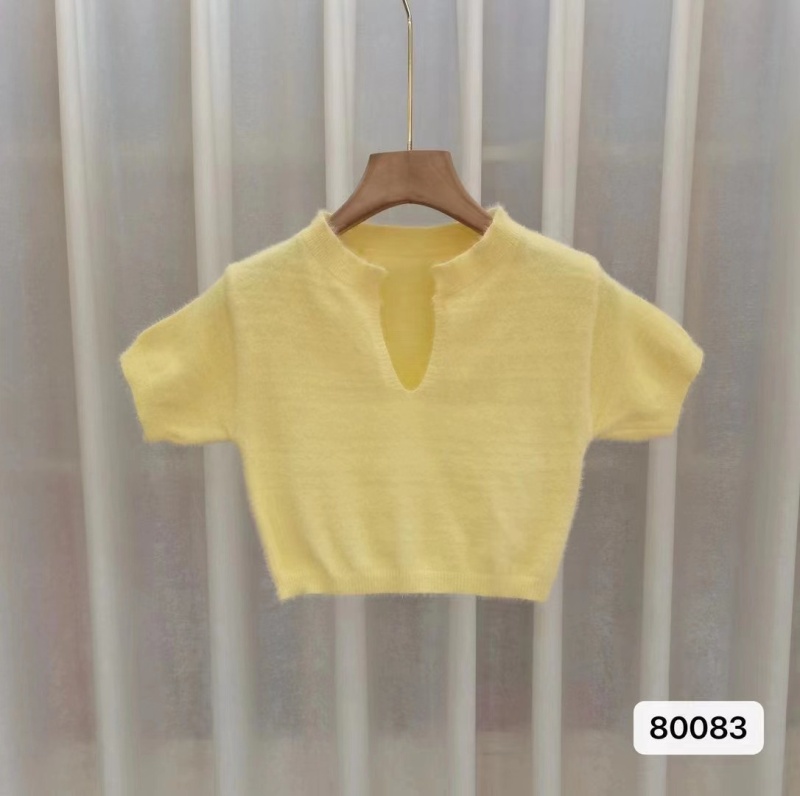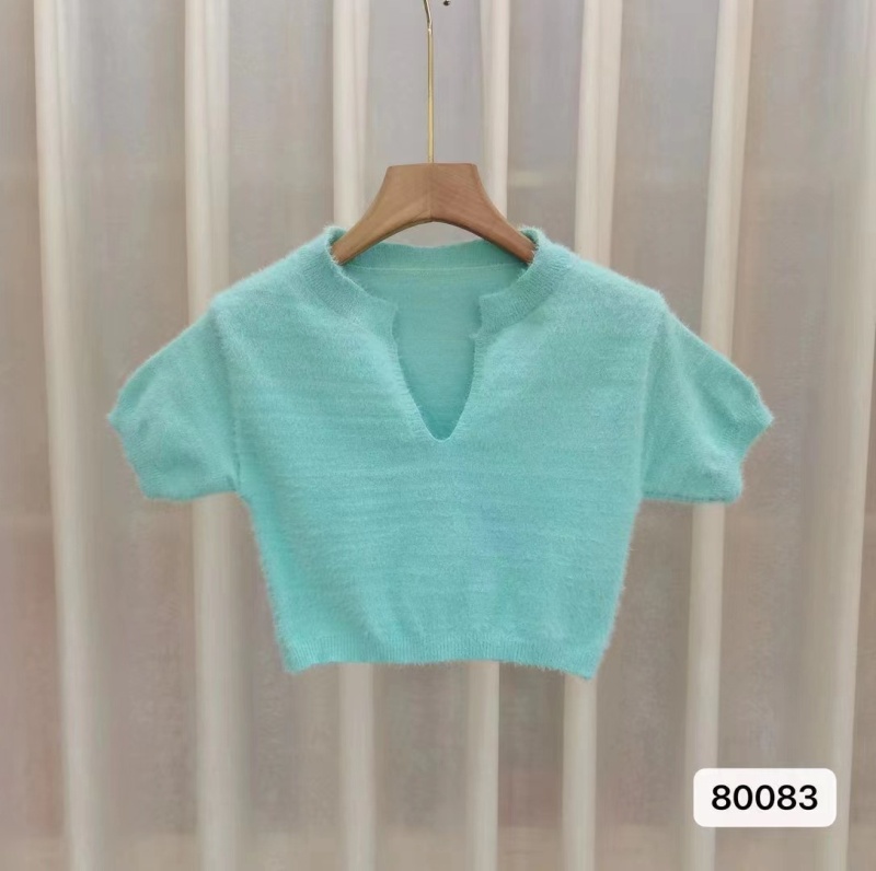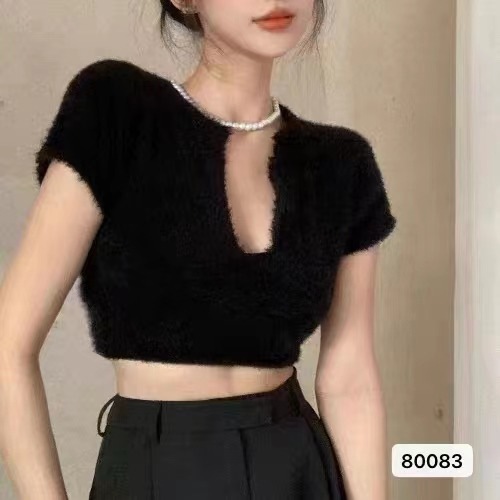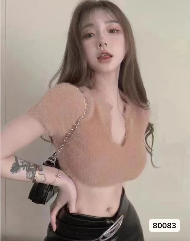高端性感纯欲风韩版短袖短款针织衫纯色女气质名媛露肚脐新款潮女
