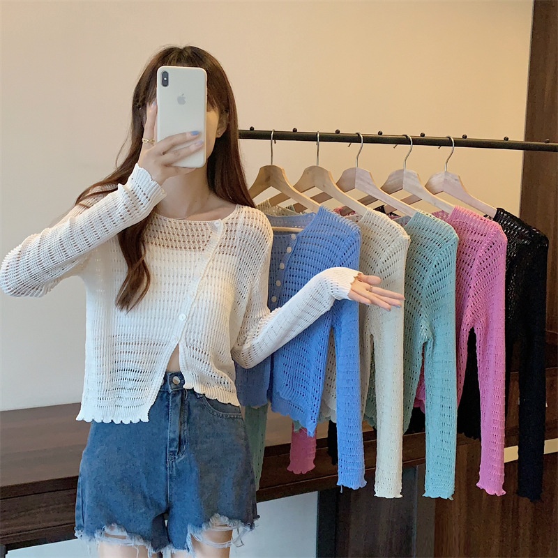 斜开衫镂空设计感纽扣薄款防晒针织外穿搭镂空罩衫空调衫上衣外搭