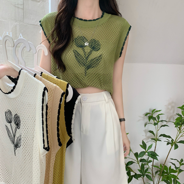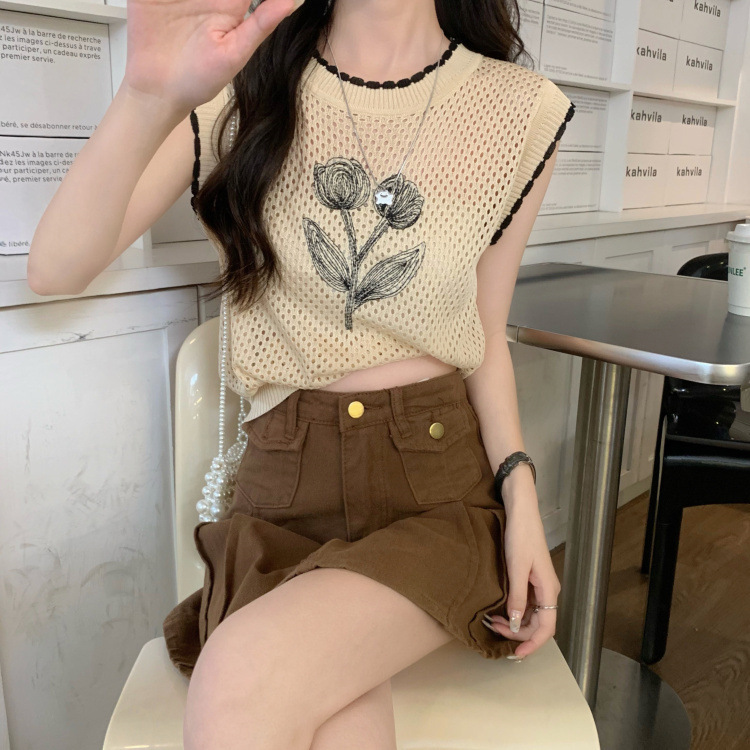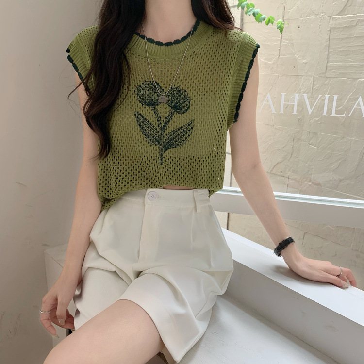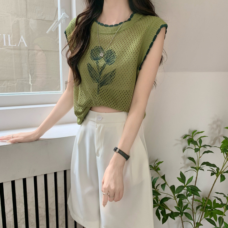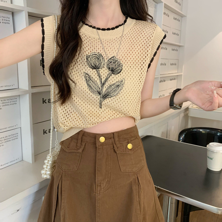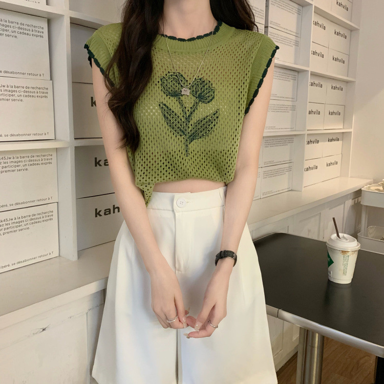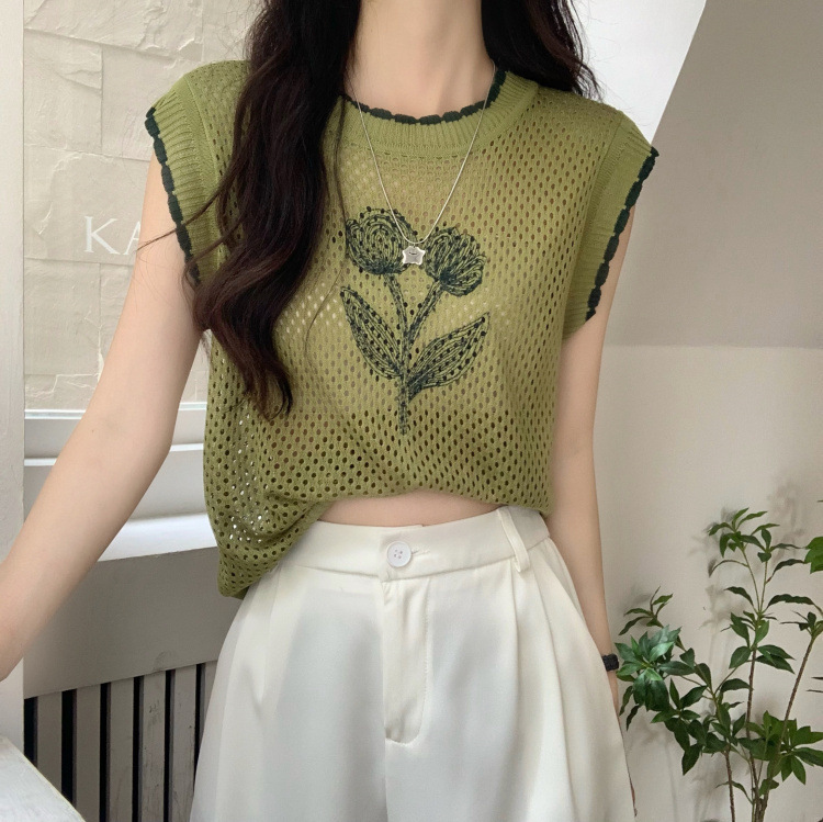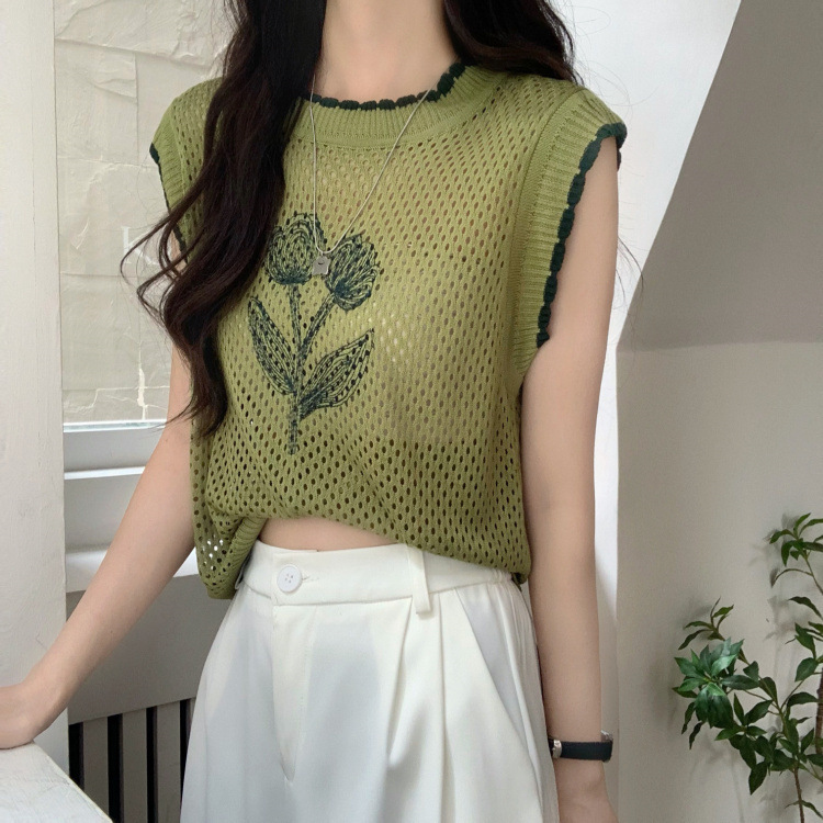 郁金香描线设计感镂空别致撞色无袖针织背心夏季百搭马甲显瘦上衣