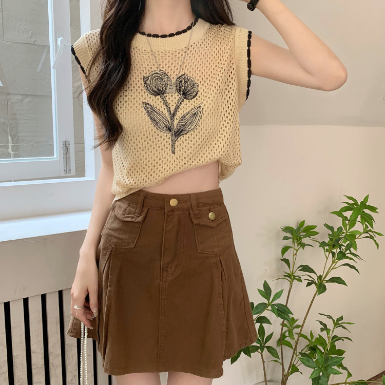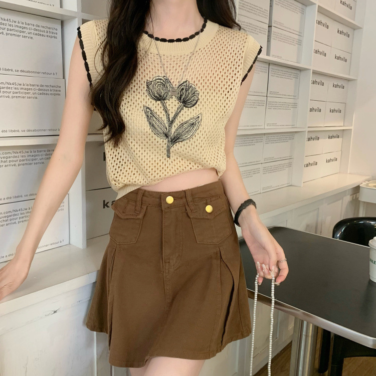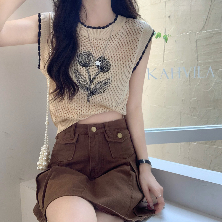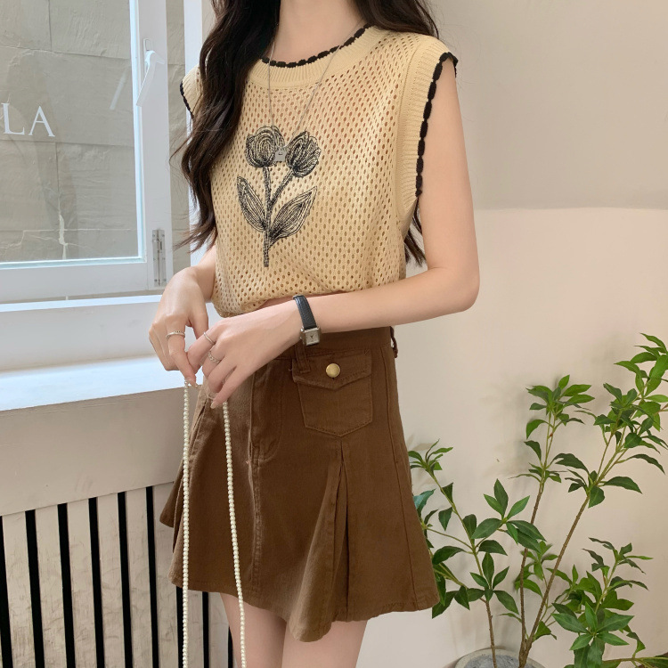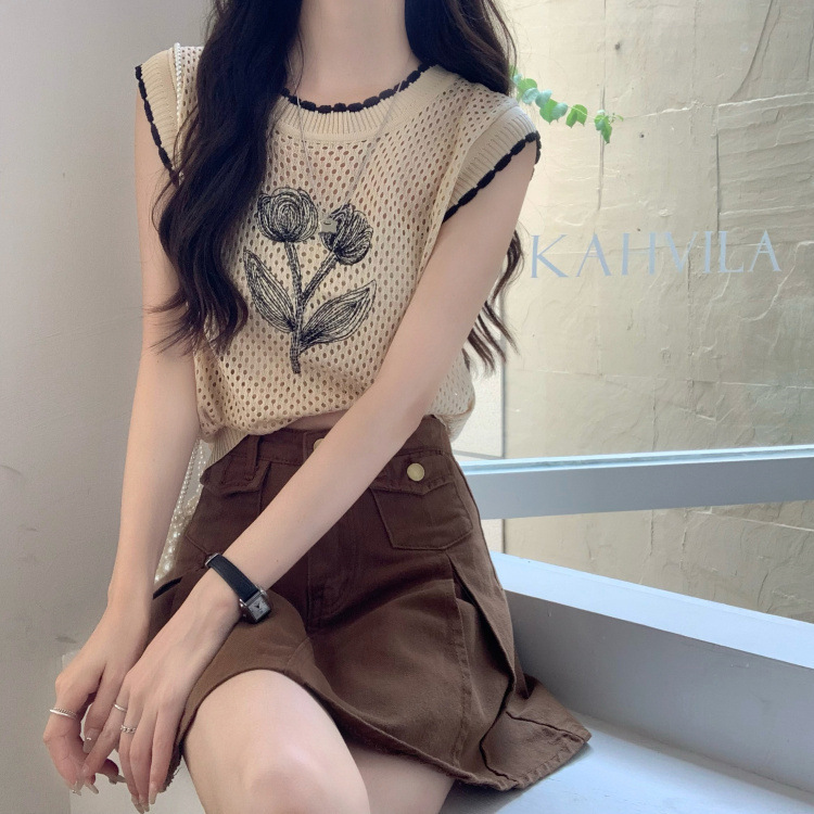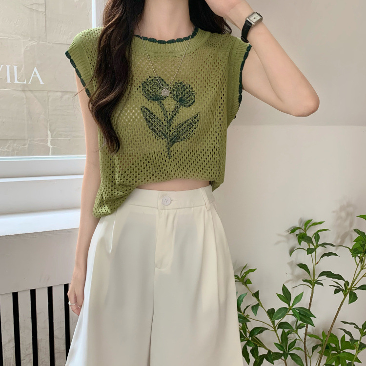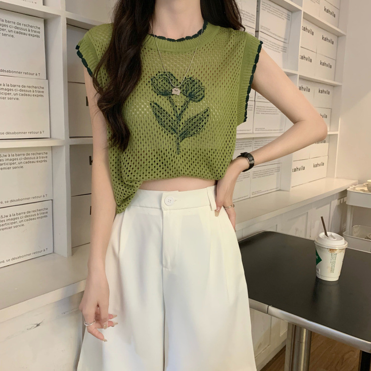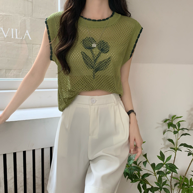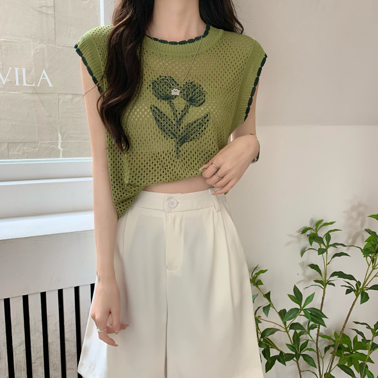 郁金香描线设计感镂空别致撞色无袖针织背心夏季百搭马甲显瘦上衣