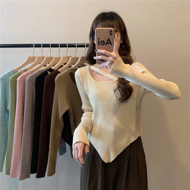 今年流行漂亮长袖针织衫初秋季上衣女新款短款设计感内搭打底衫潮