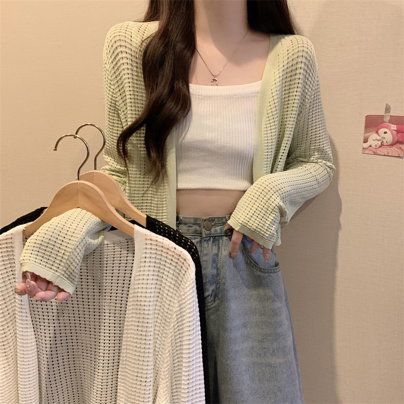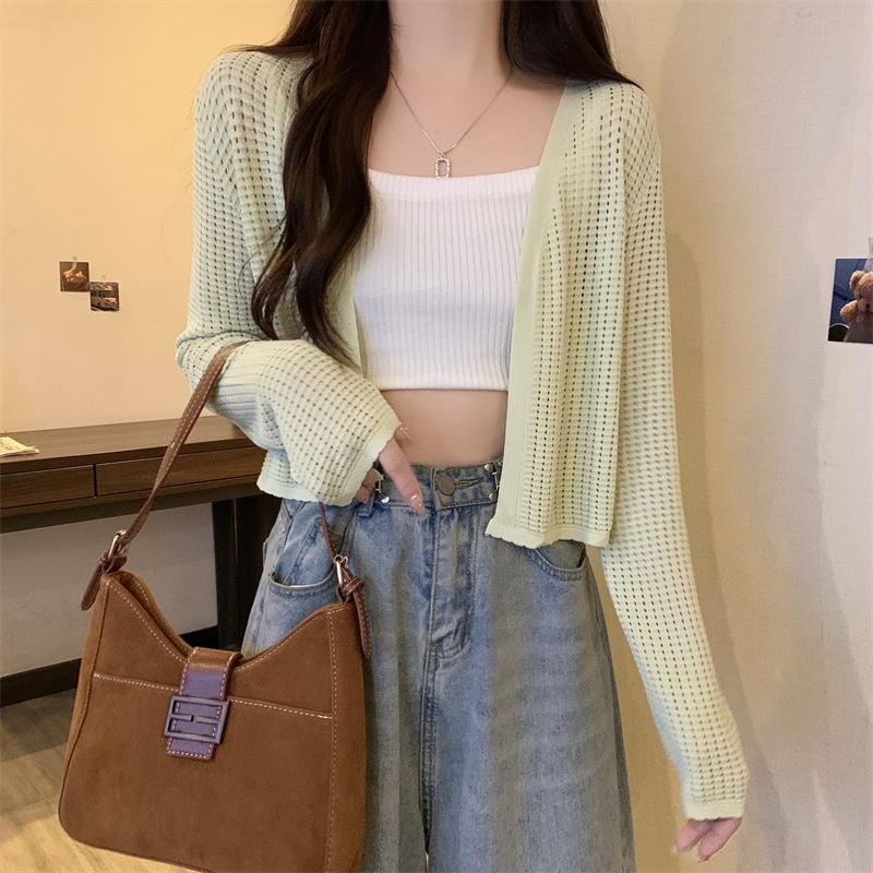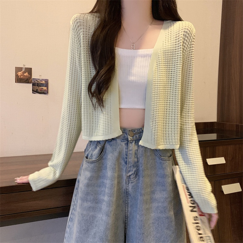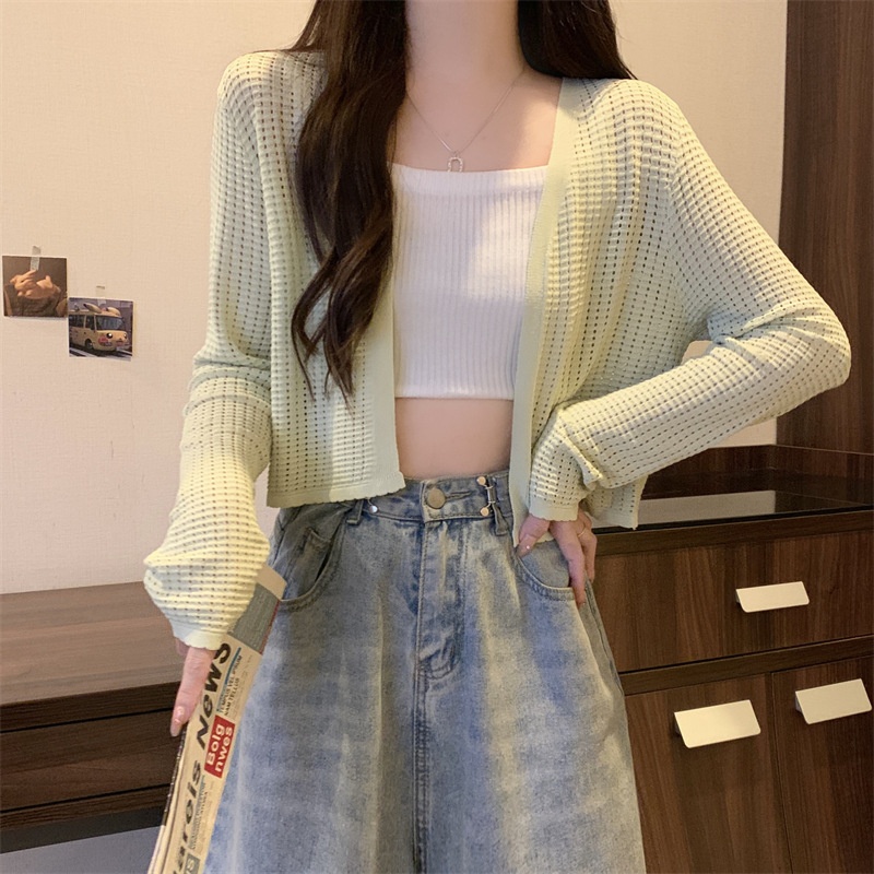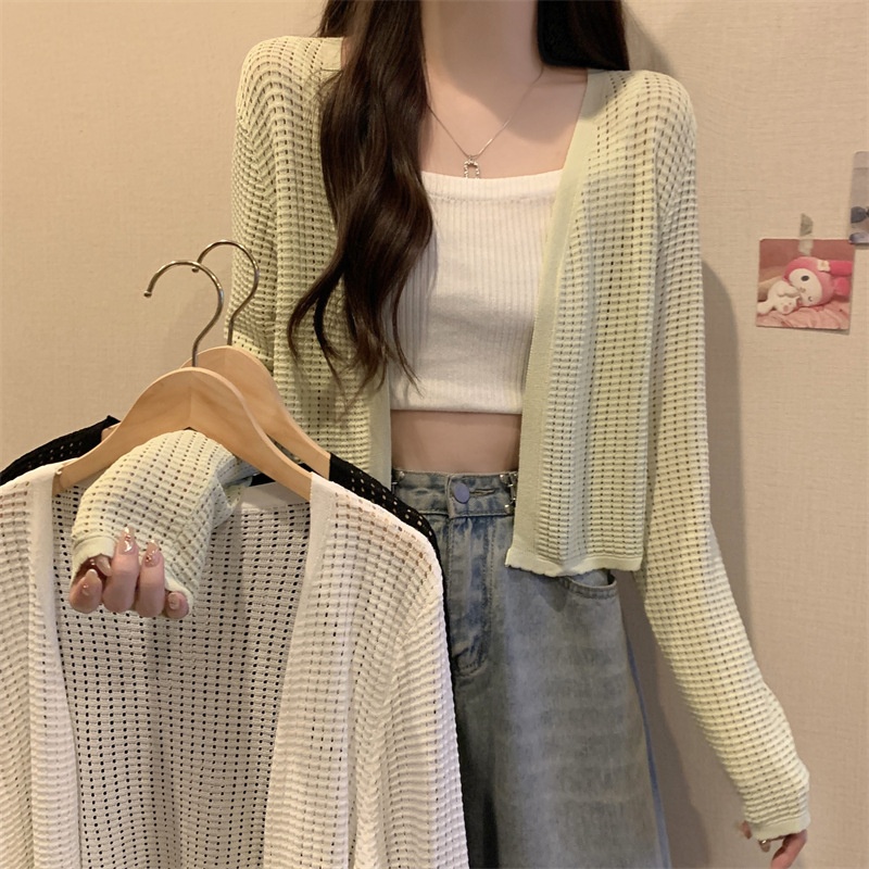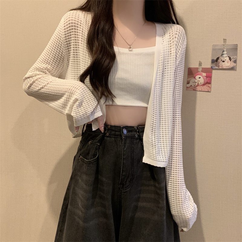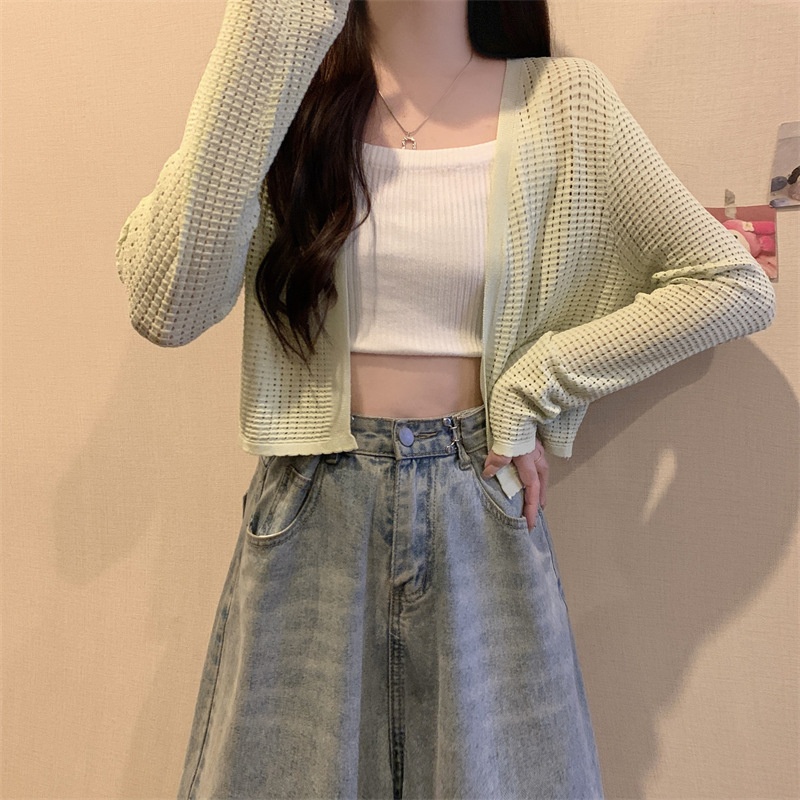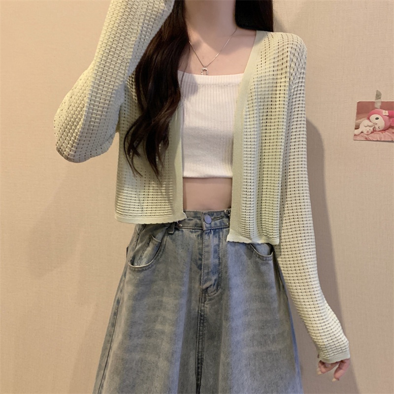 2024夏季新款短款镂空甜美清新显瘦外搭防晒开衫针织外套女上衣潮