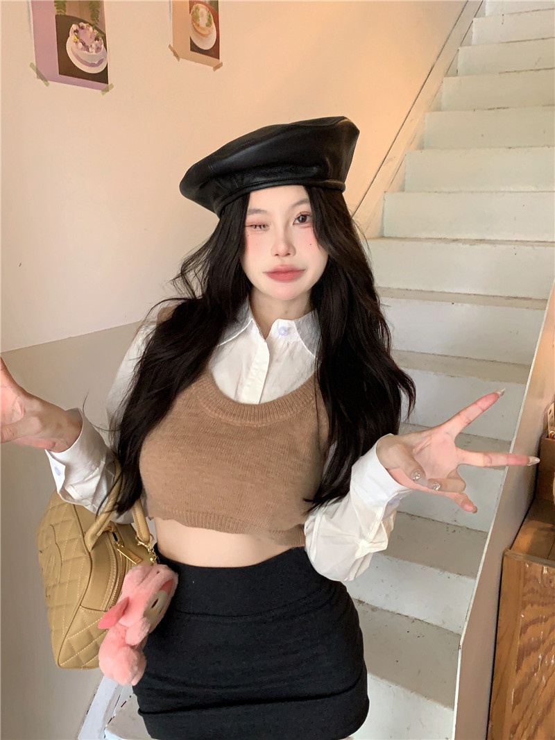 2023秋季新款辣妹风设计感针织衫纯色针织洋气减龄短款马甲上衣女