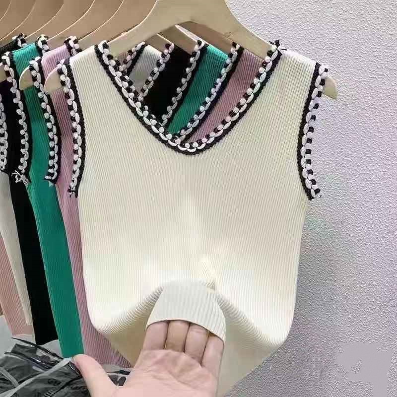 冰丝吊带背心女内搭外穿V领小香风白色修身针织纯欲上衣无袖打底