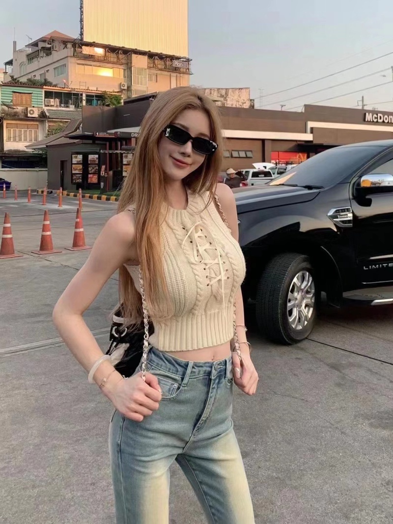 夏季新款针织吊带背心短款上衣镂空无袖设计感衫辣妹性感外穿内搭