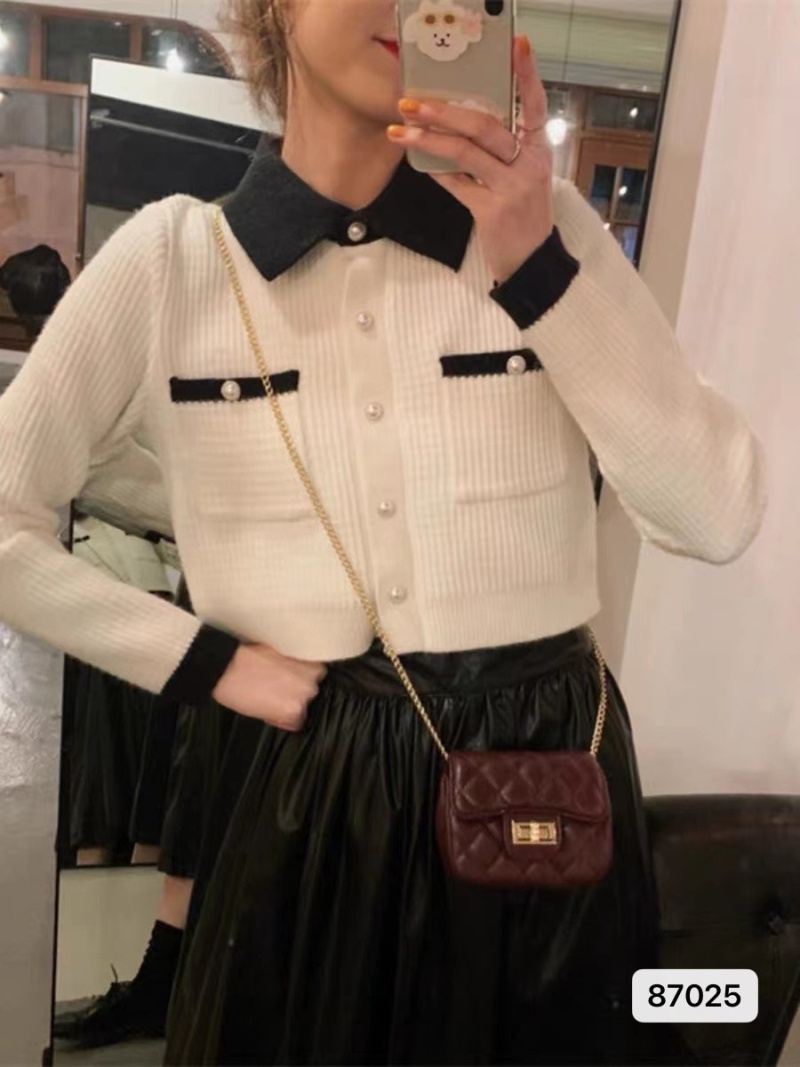 2023秋季新款小香风韩版设计感拼色方领短款长袖针织开衫外套女潮