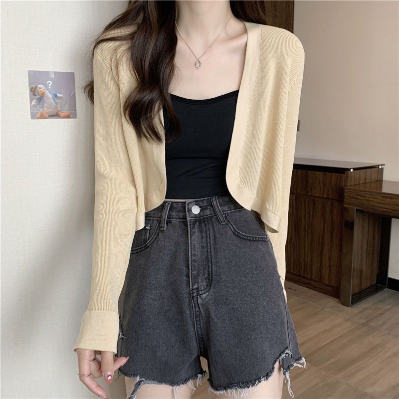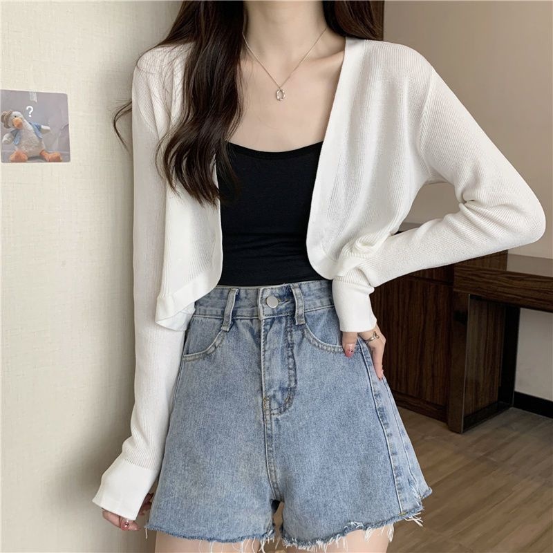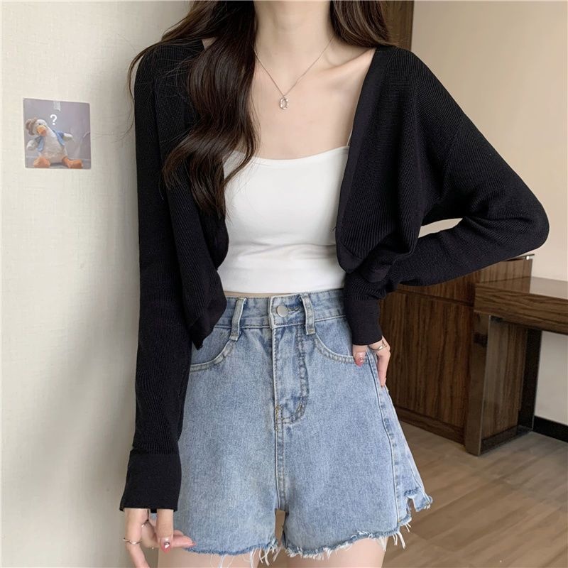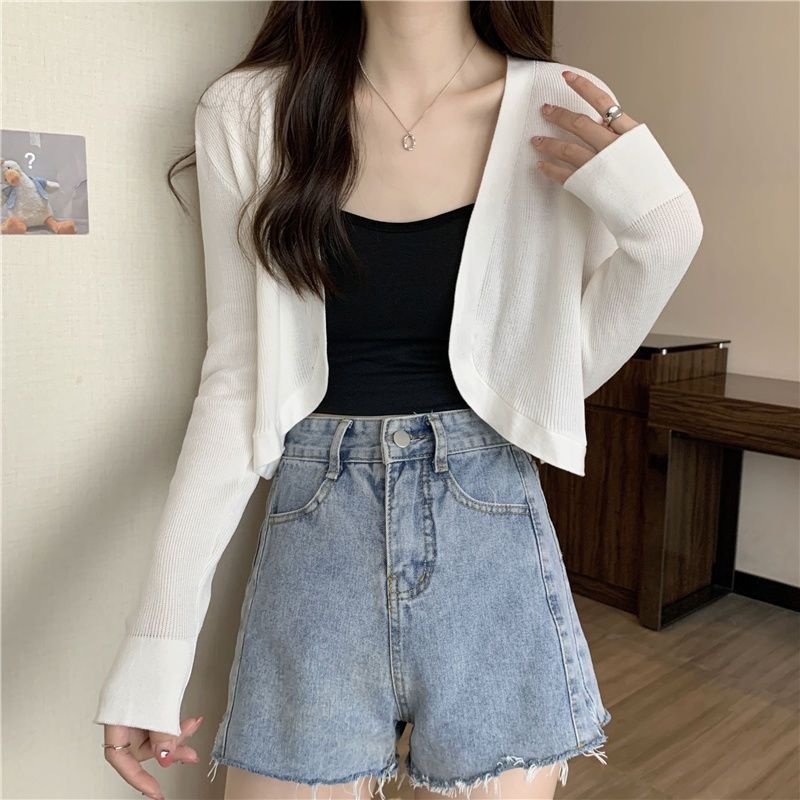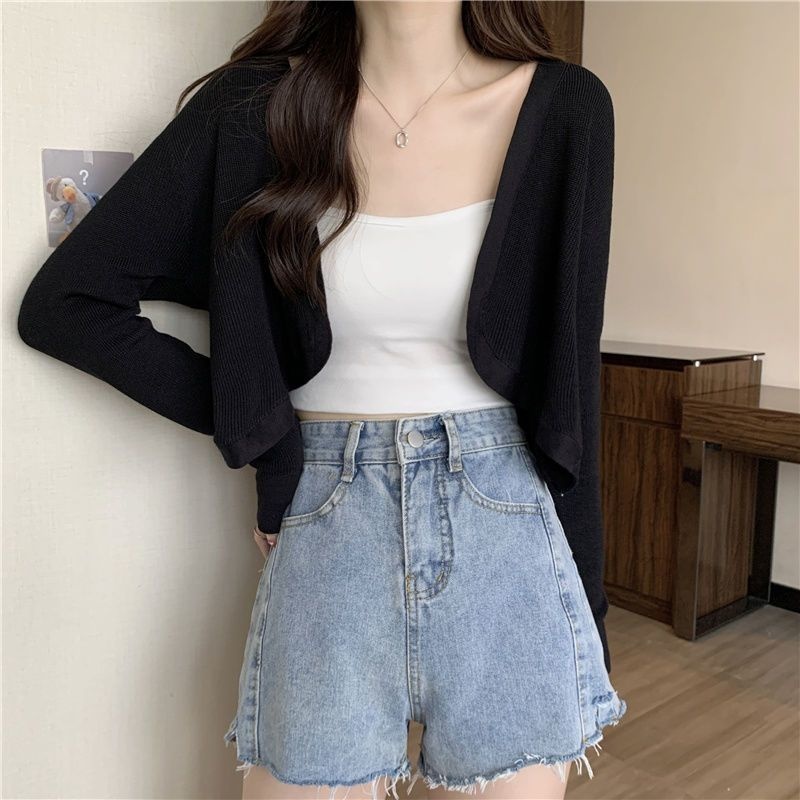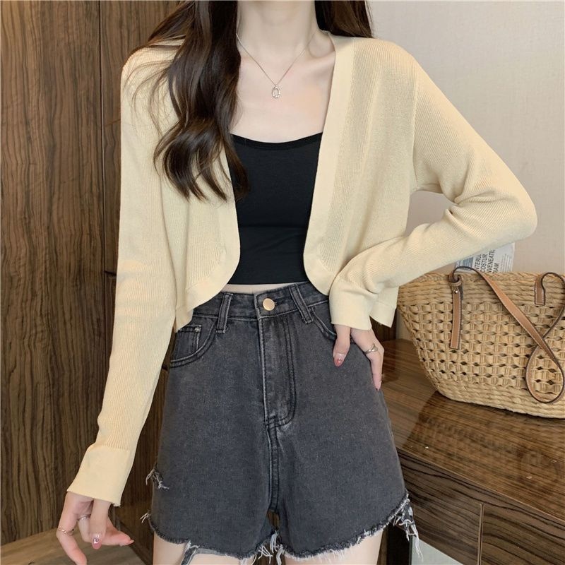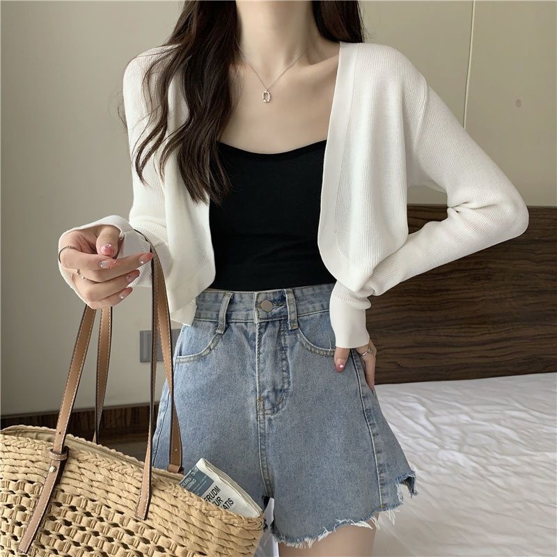 2023夏季新款白色小香风短外套软糯针织开衫外搭披肩短款上衣女潮