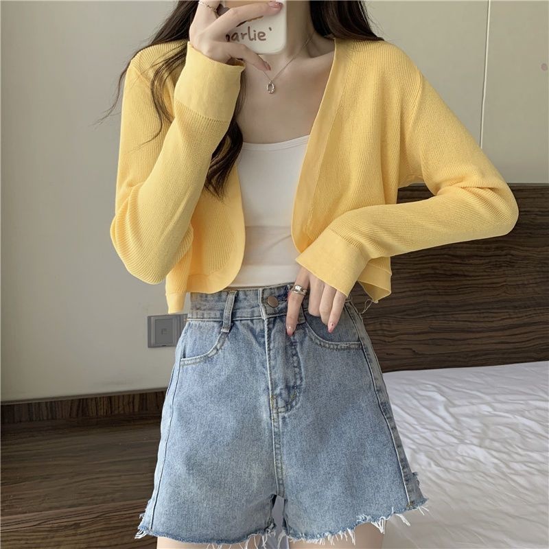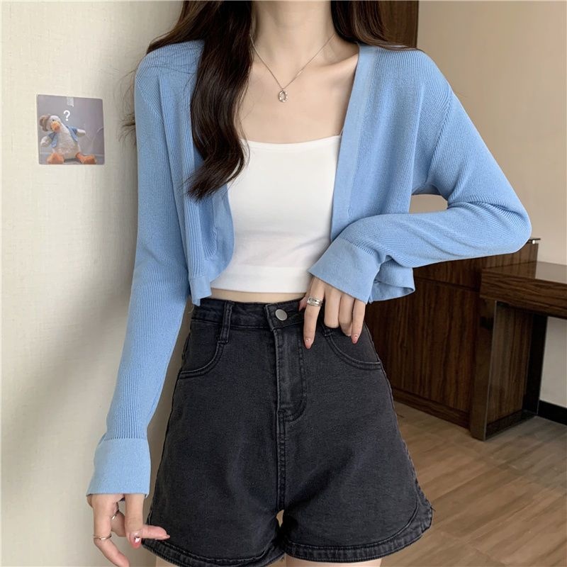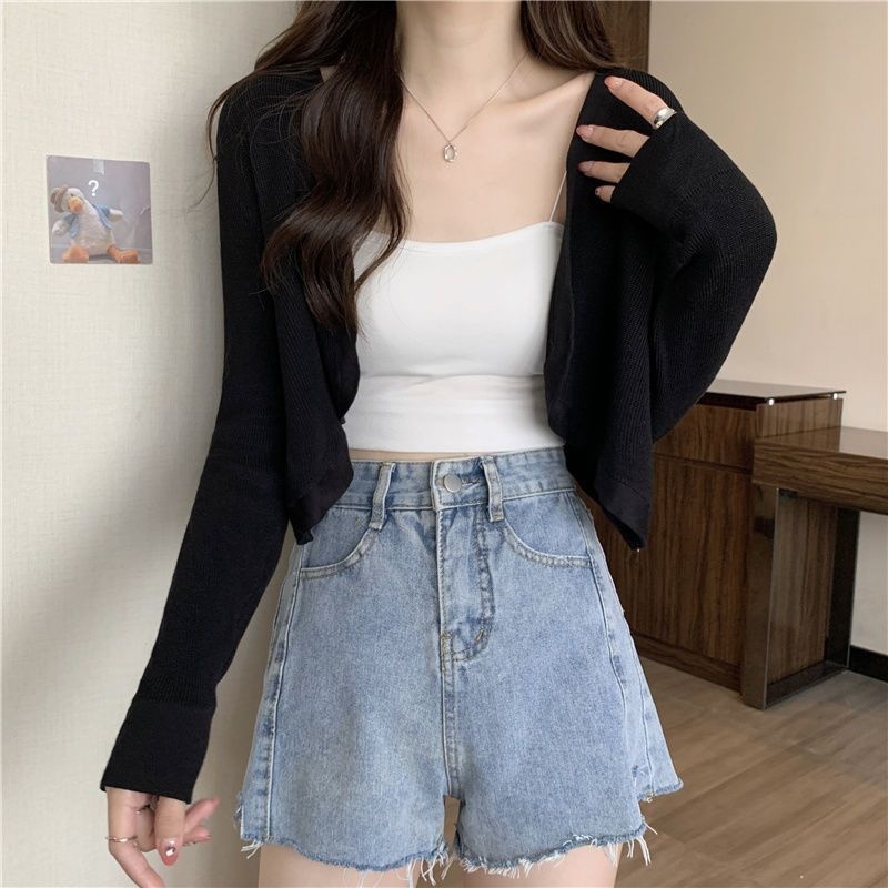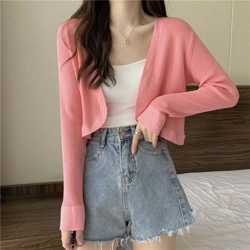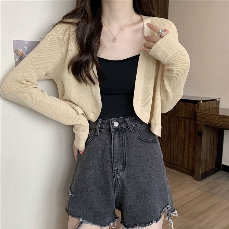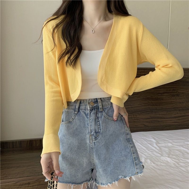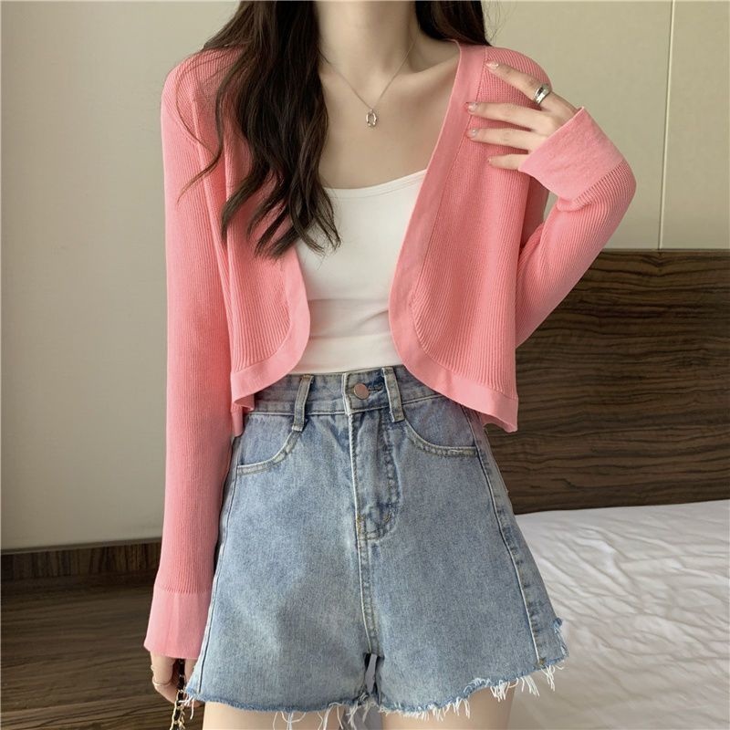 2023夏季新款白色小香风短外套软糯针织开衫外搭披肩短款上衣女潮