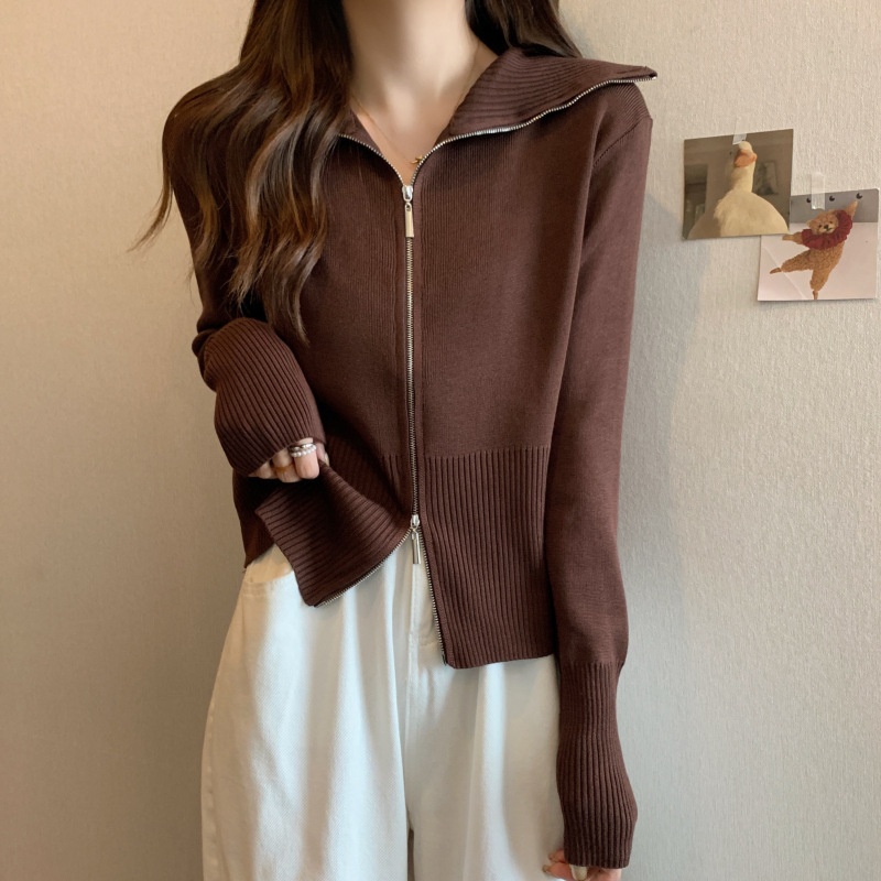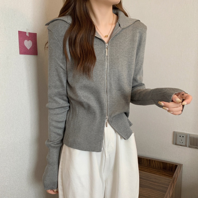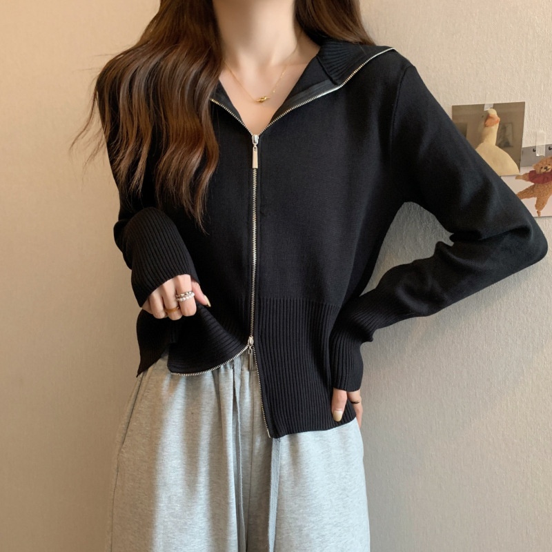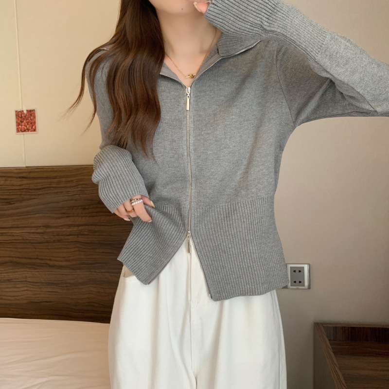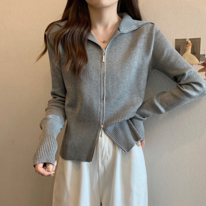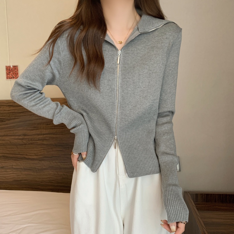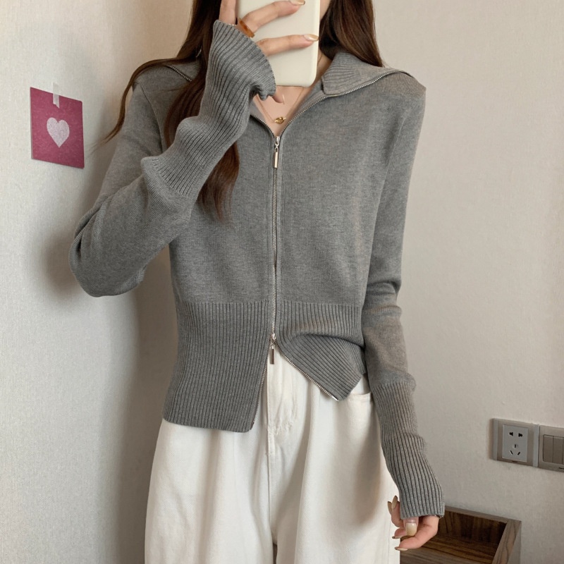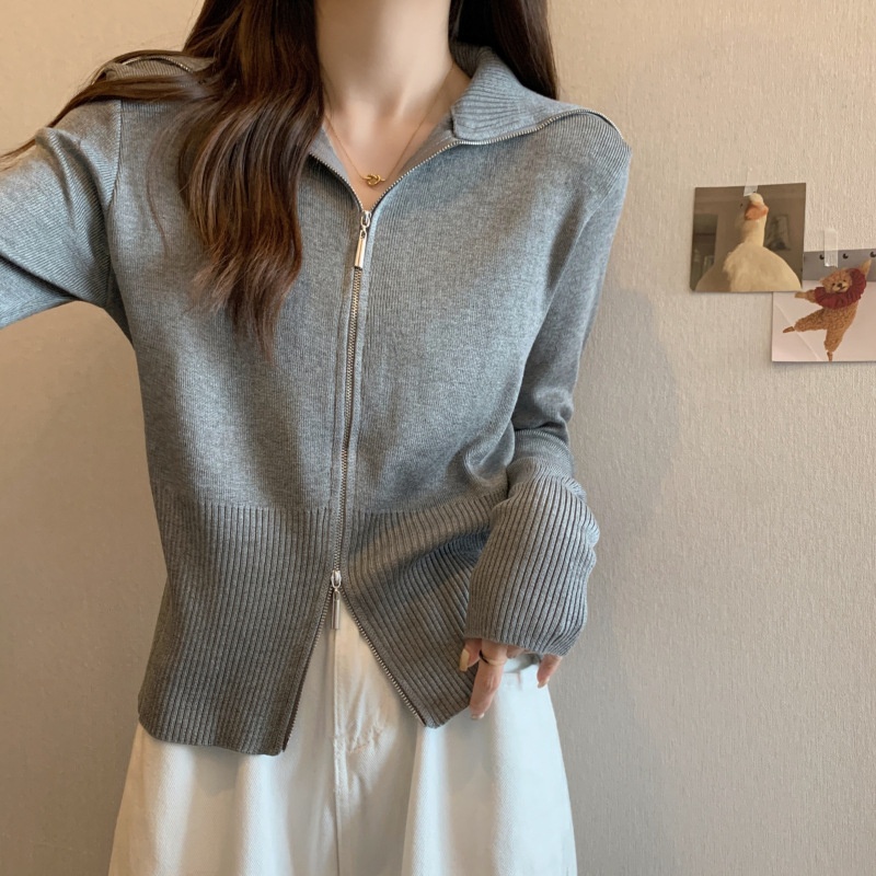 2023年春秋新款针织开衫韩版设计感长袖显瘦双拉链百搭毛衣女上衣