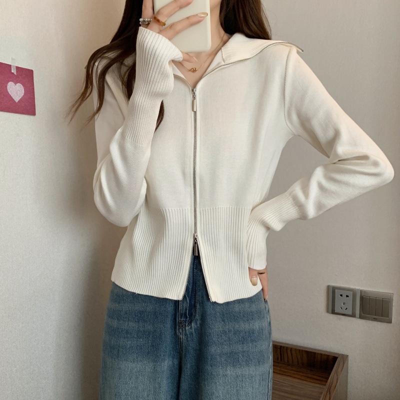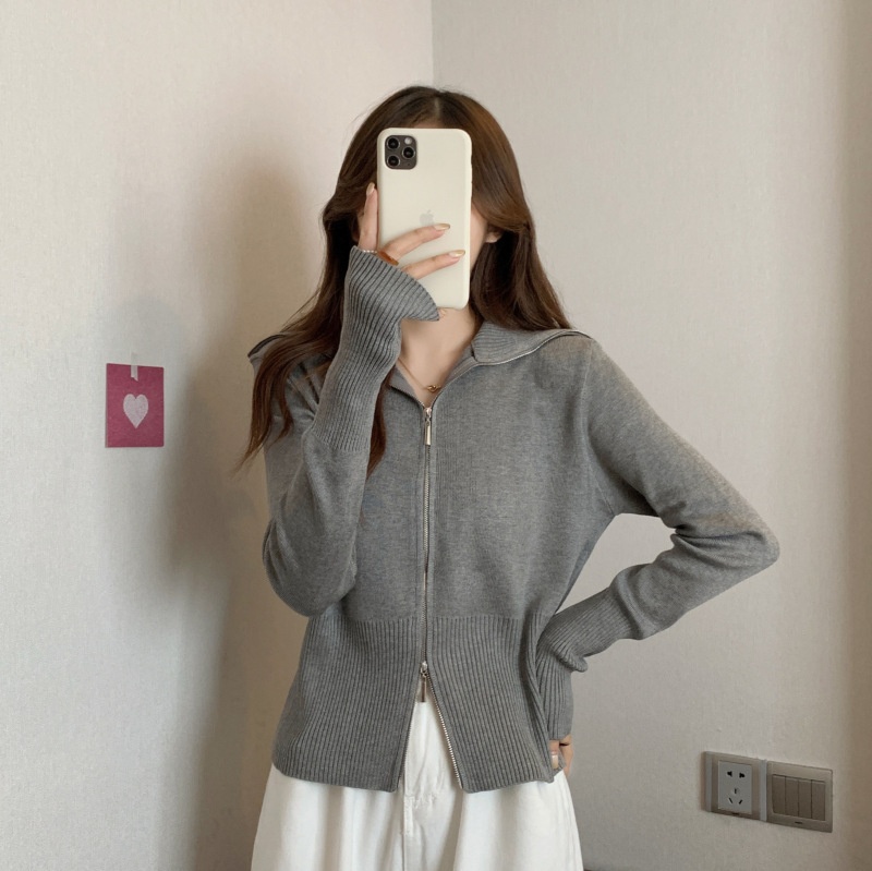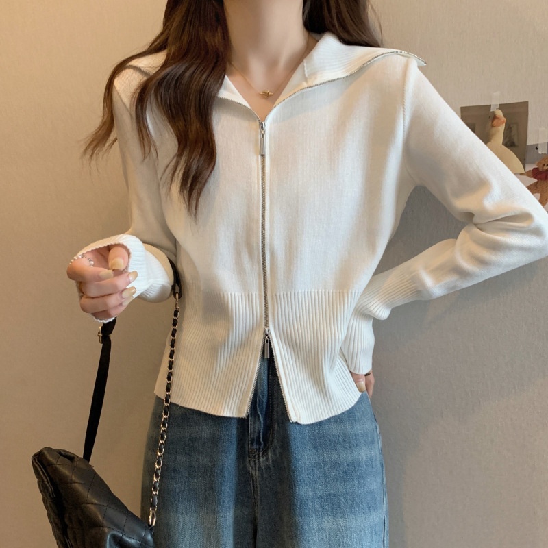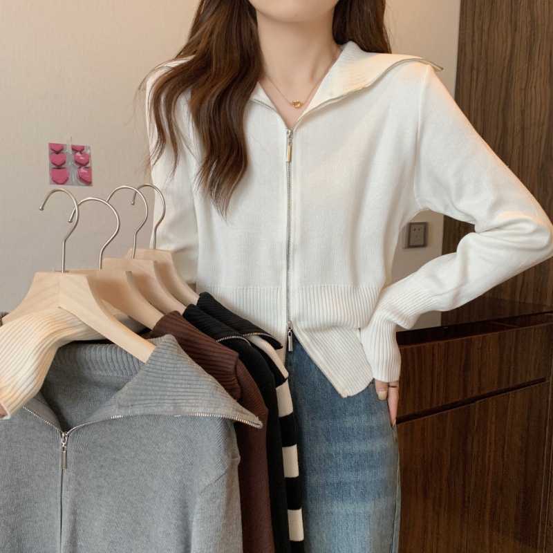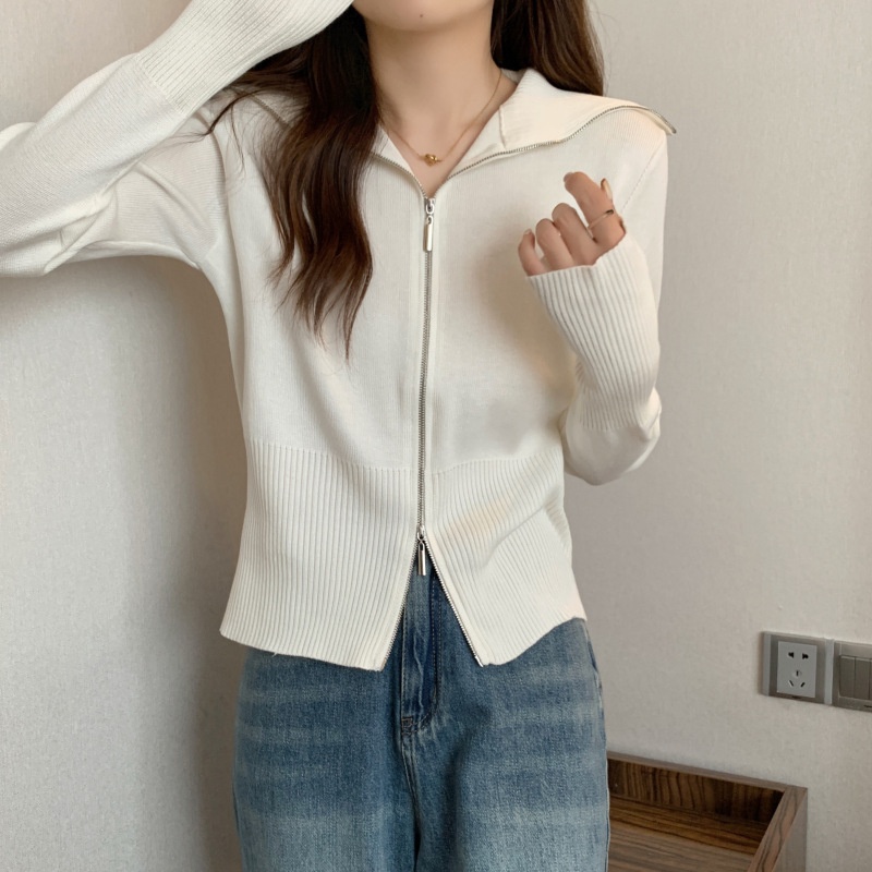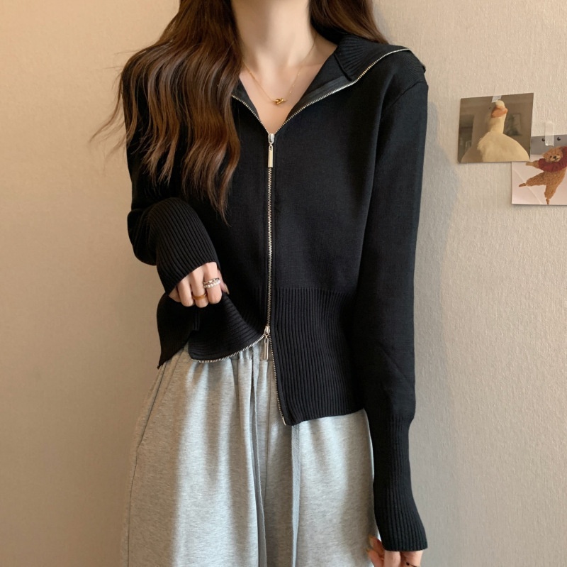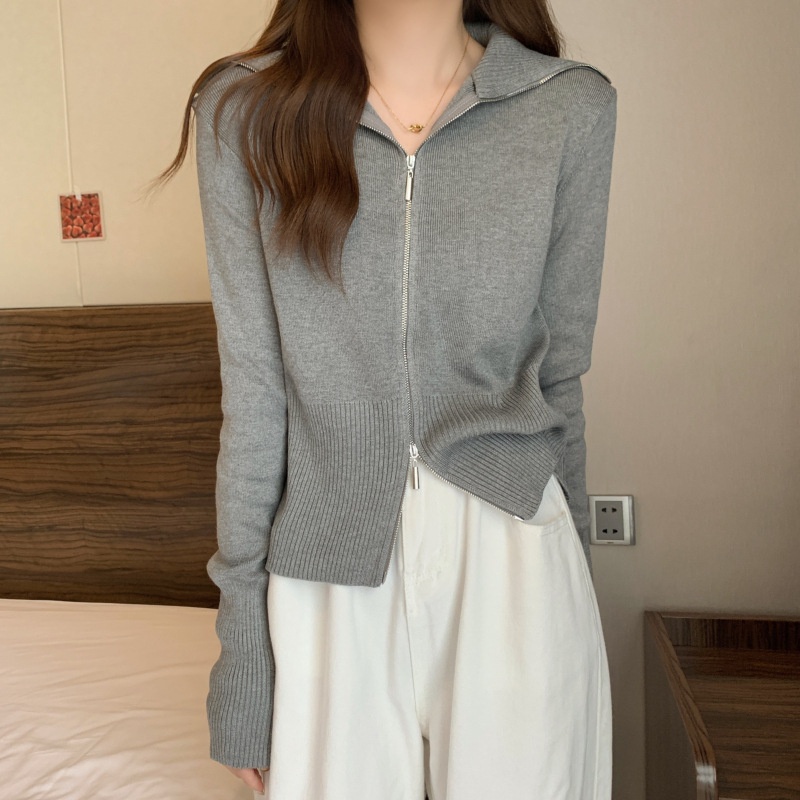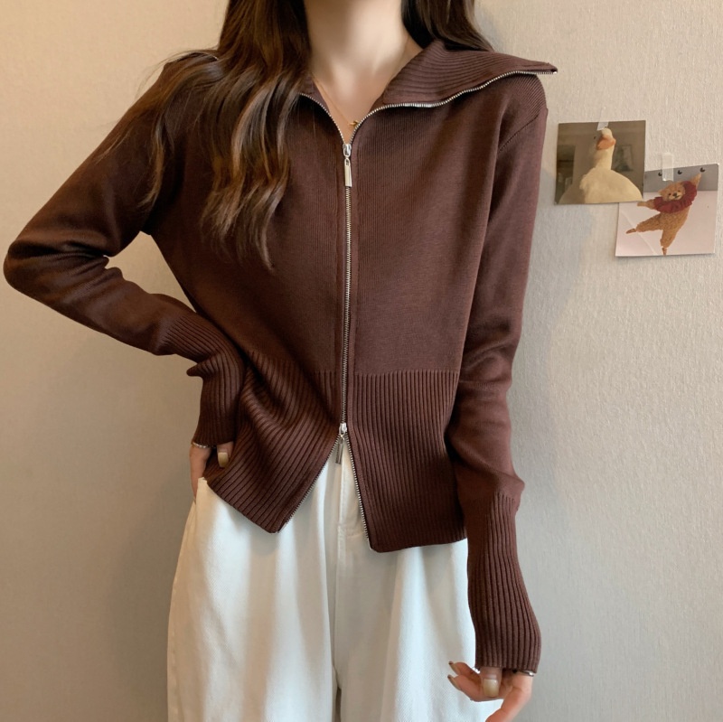 2023年春秋新款针织开衫韩版设计感长袖显瘦双拉链百搭毛衣女上衣