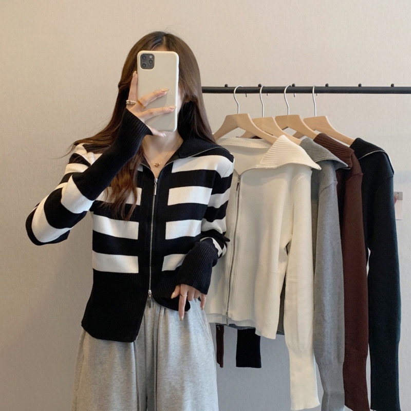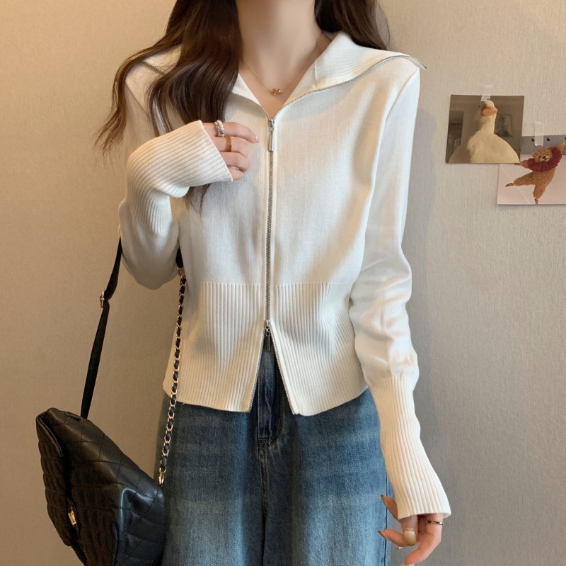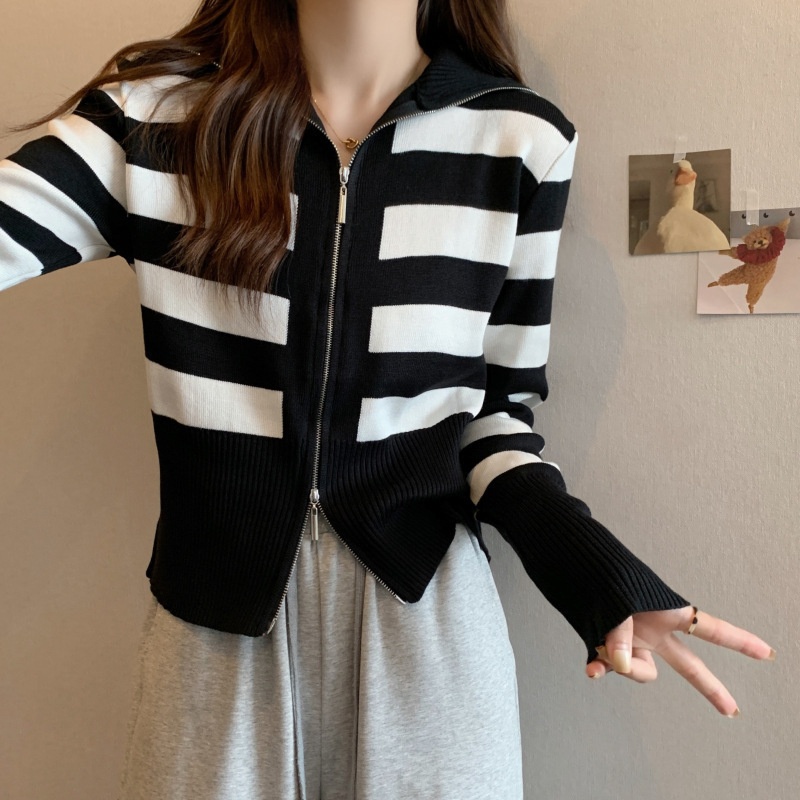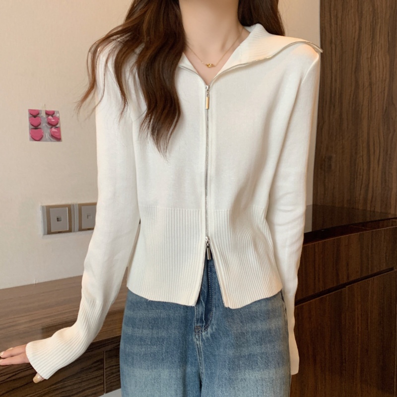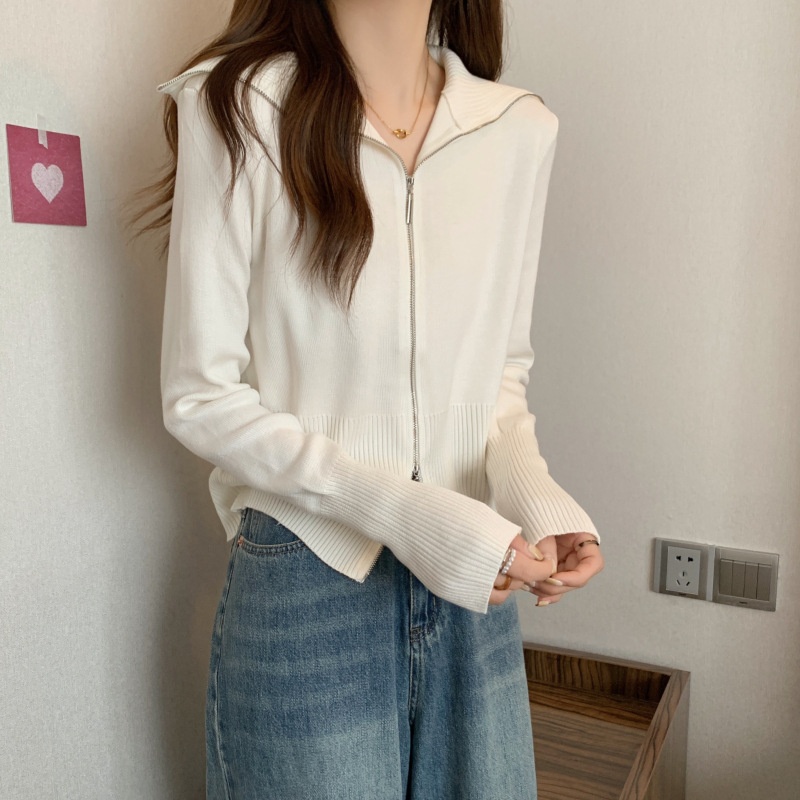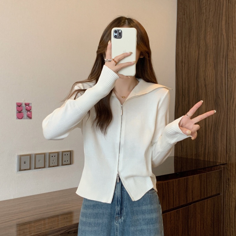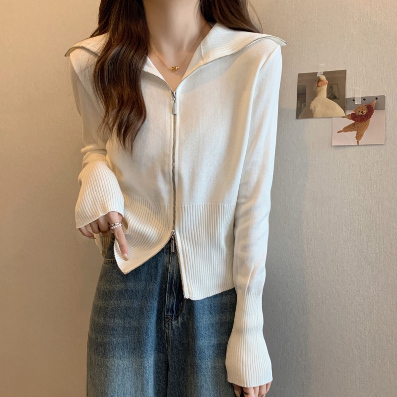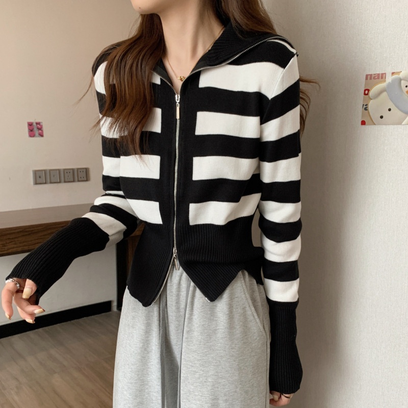 2023年春秋新款针织开衫韩版设计感长袖显瘦双拉链百搭毛衣女上衣