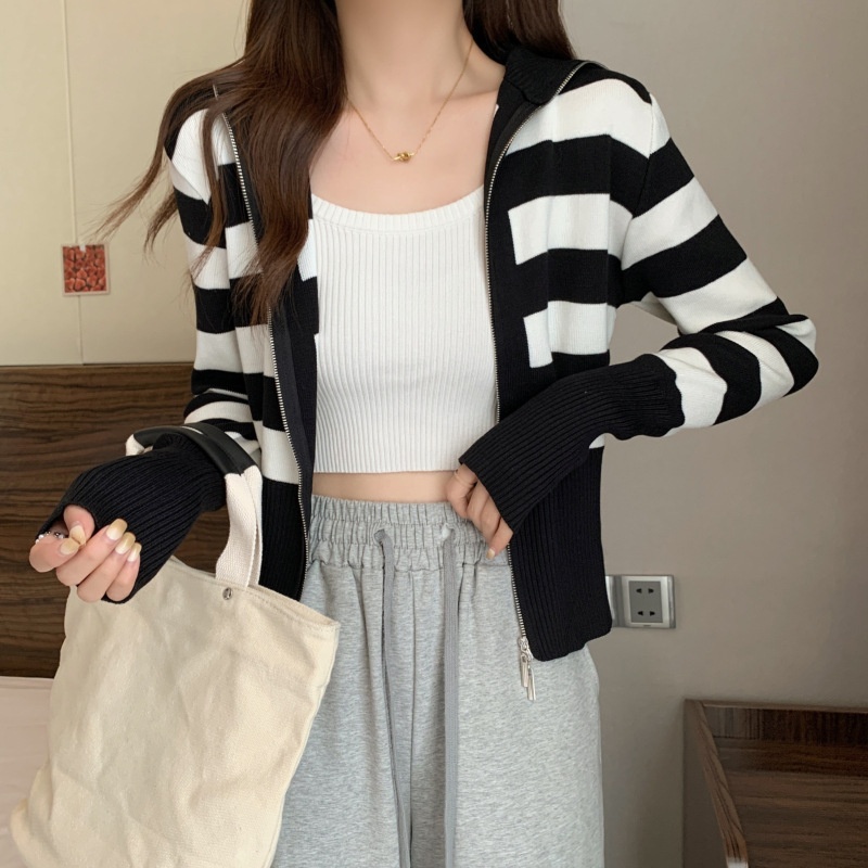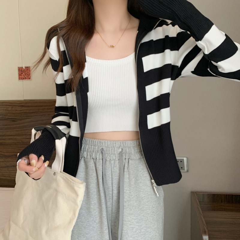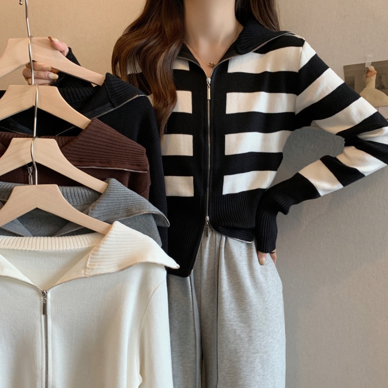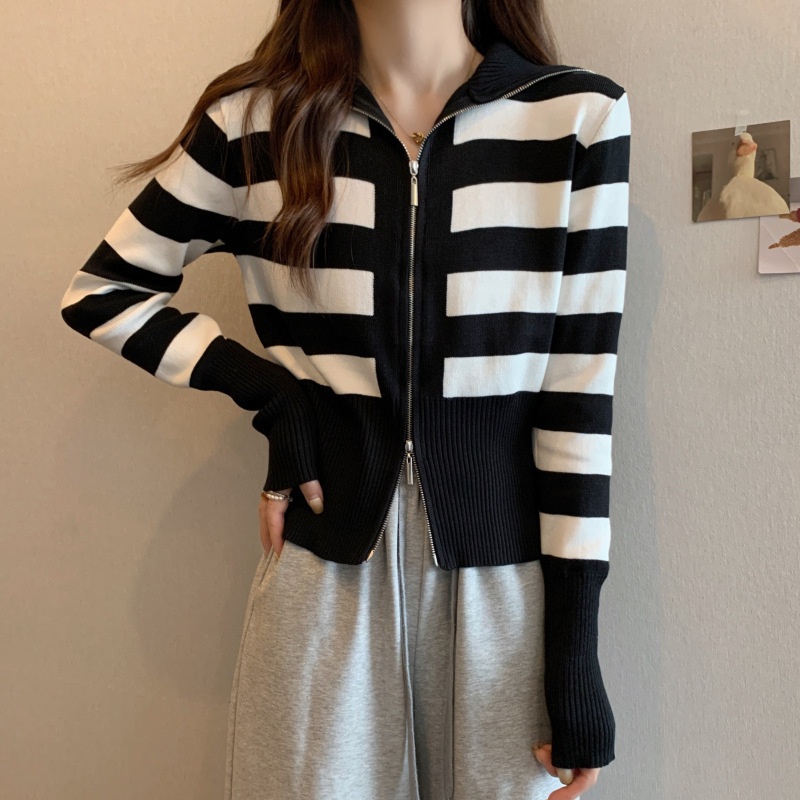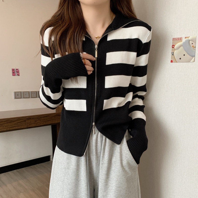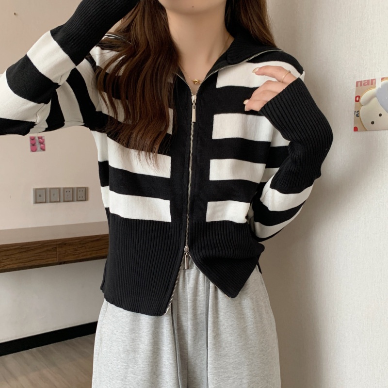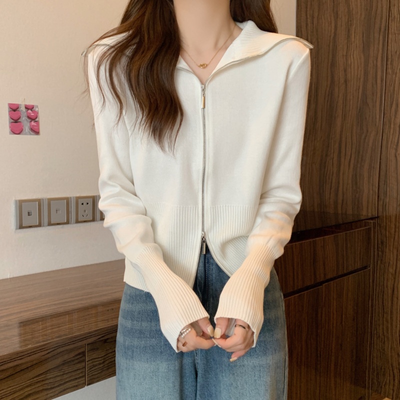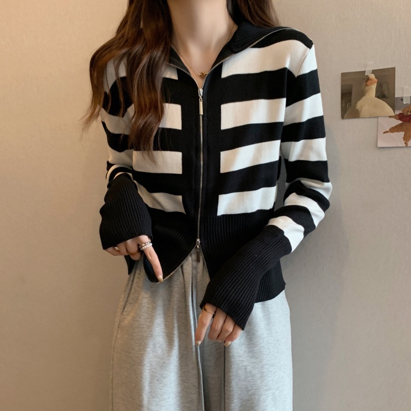 2023年春秋新款针织开衫韩版设计感长袖显瘦双拉链百搭毛衣女上衣