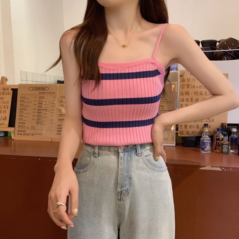 冰丝小吊带无袖背心女夏外穿内搭宽松韩版短款v领针织打底衫上衣
