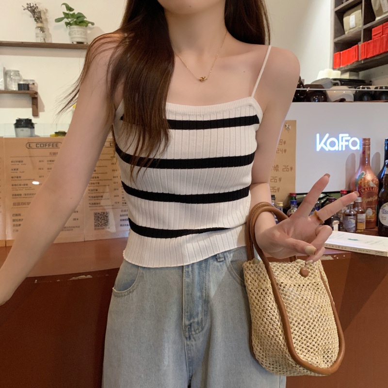 夏季新款性感辣妹吊带背心设计感小众外穿美背高腰露脐针织上衣女