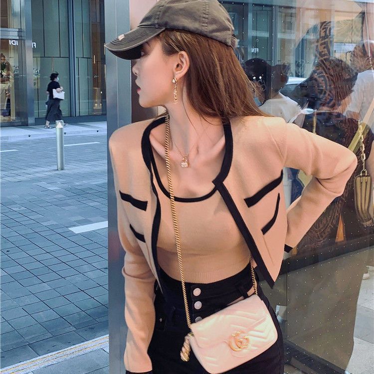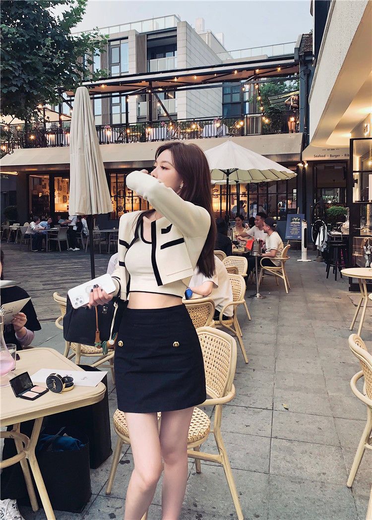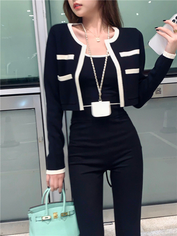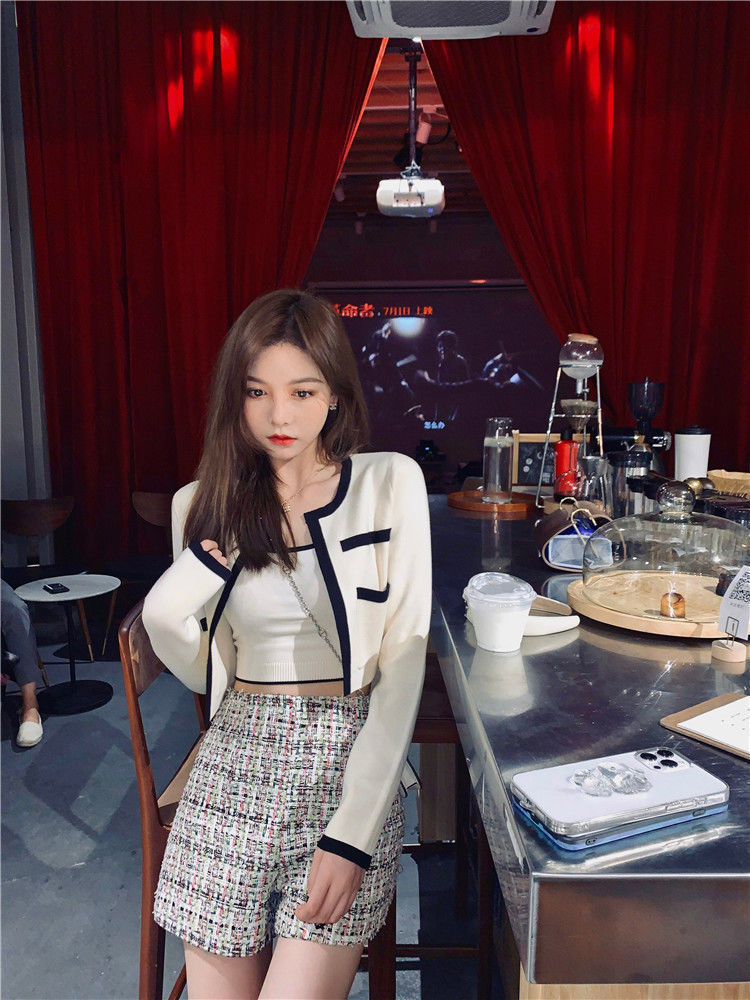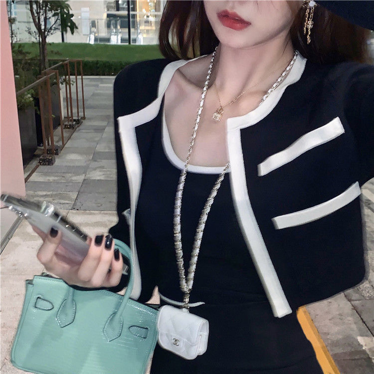 夏季新款学院两件套风露脐针织吊带背心毛衣针织开衫外套短款上衣