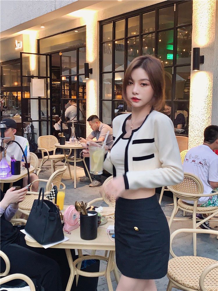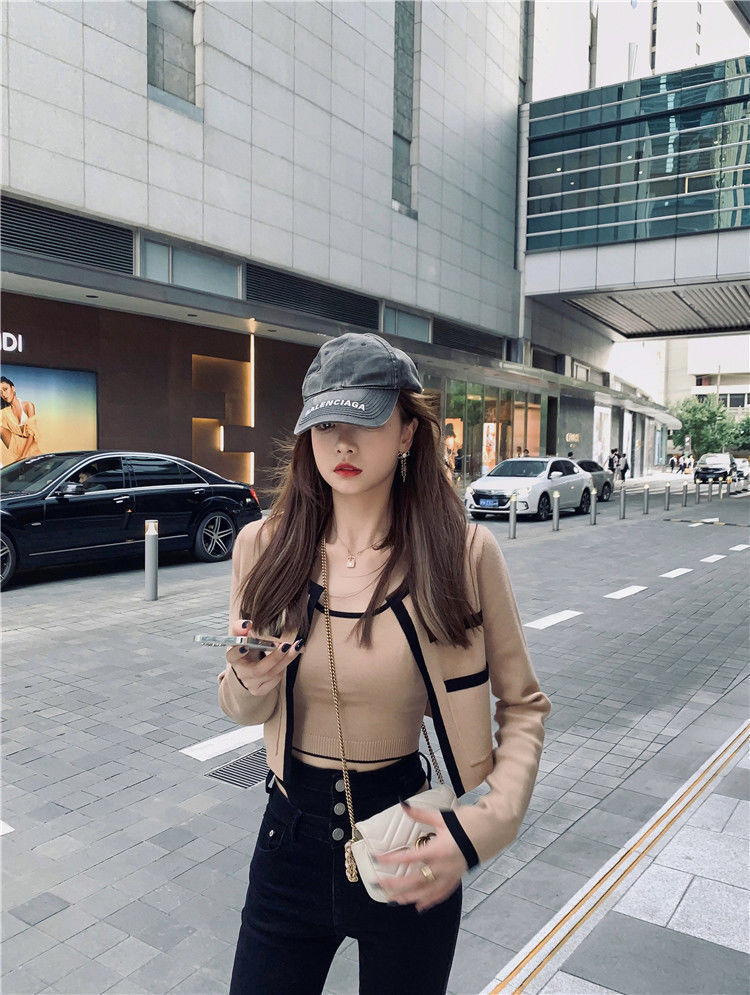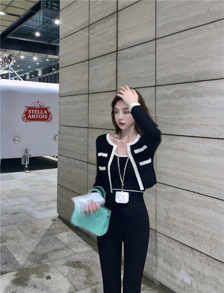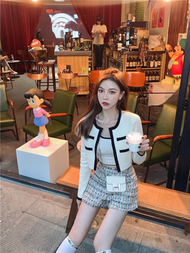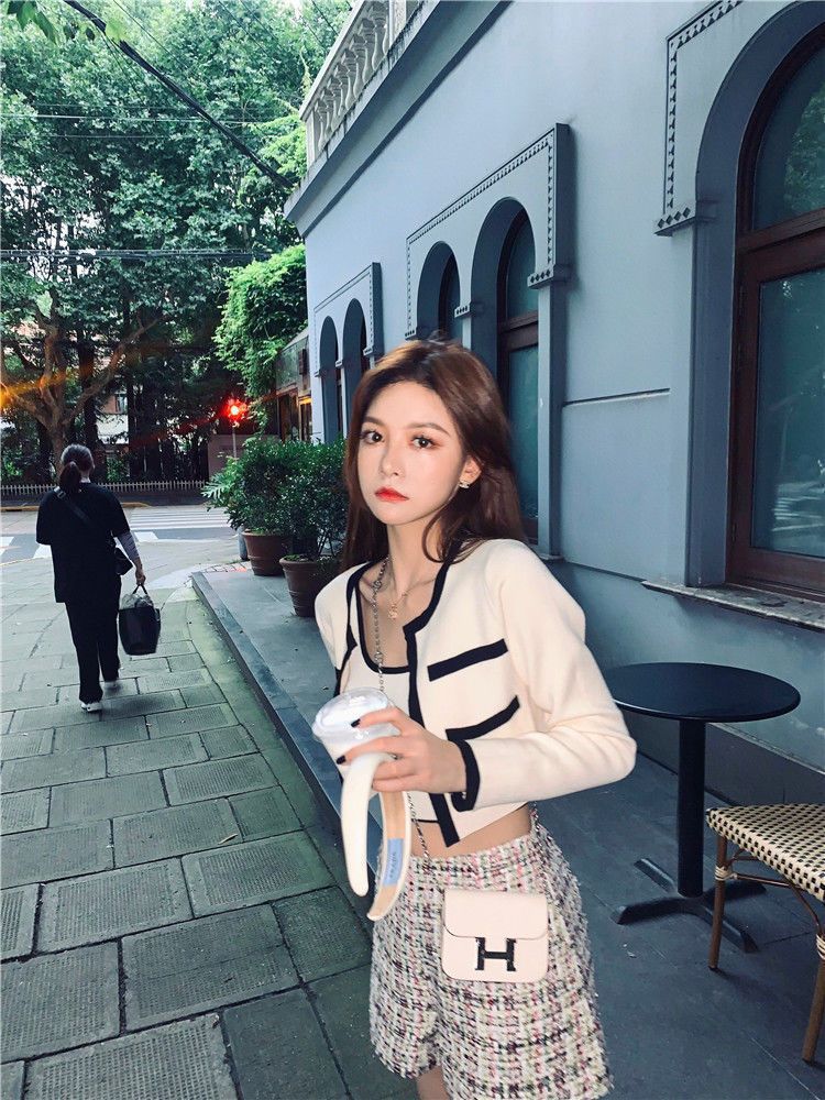 夏季新款学院两件套风露脐针织吊带背心毛衣针织开衫外套短款上衣
