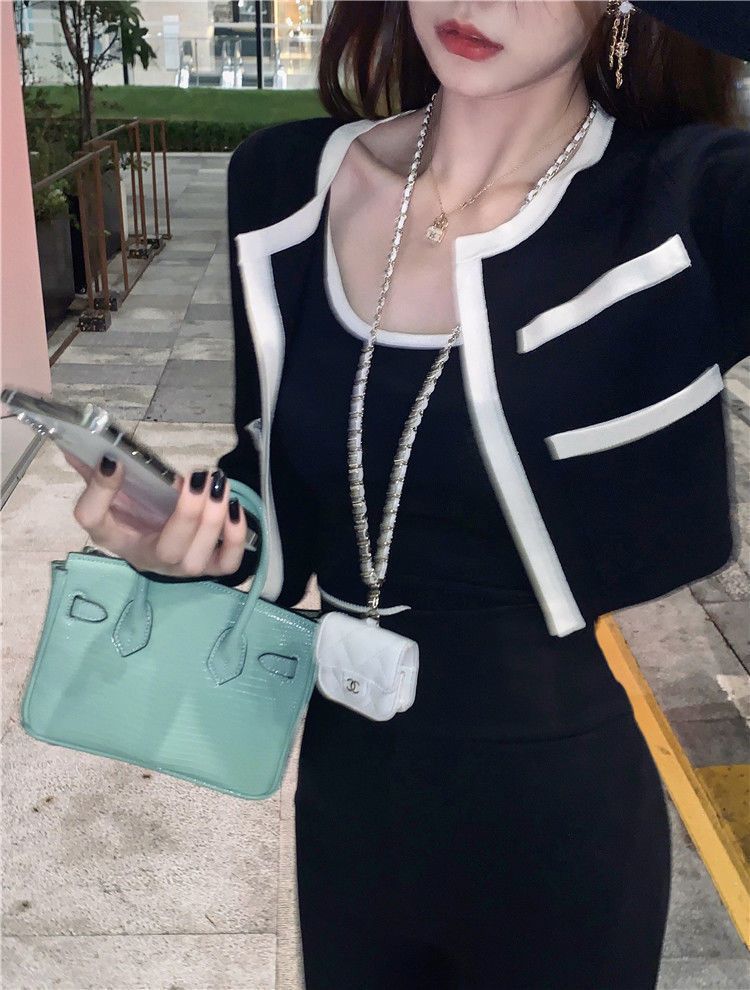 韩版网红辣妹穿搭上衣马甲纯欲气质小个子拼接棋盘针织背心上衣女