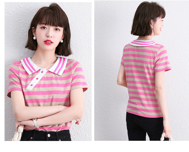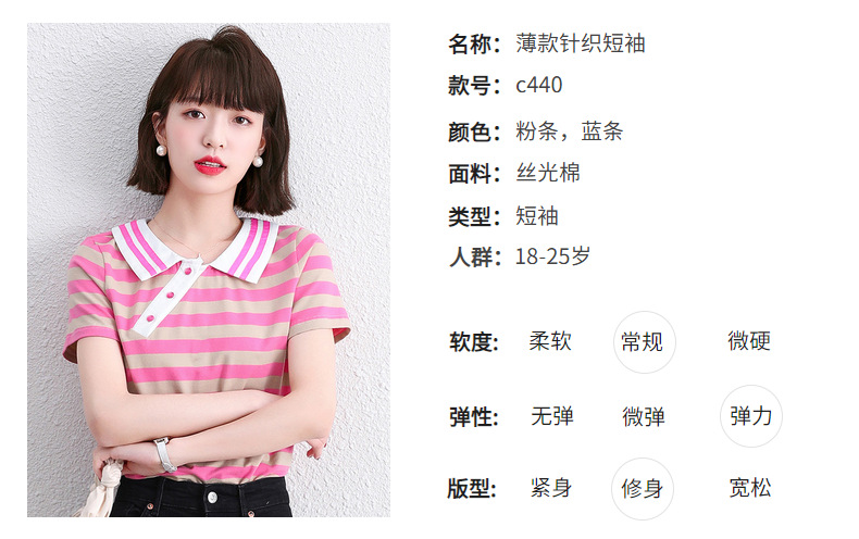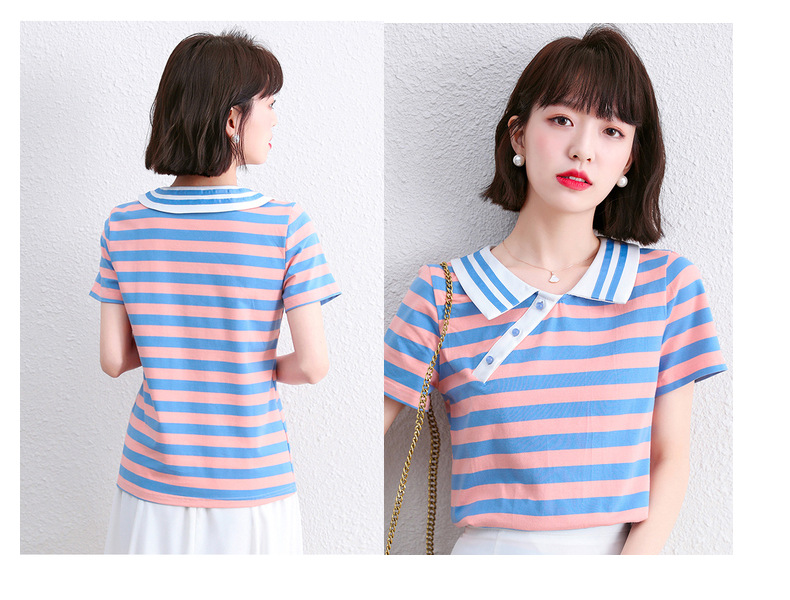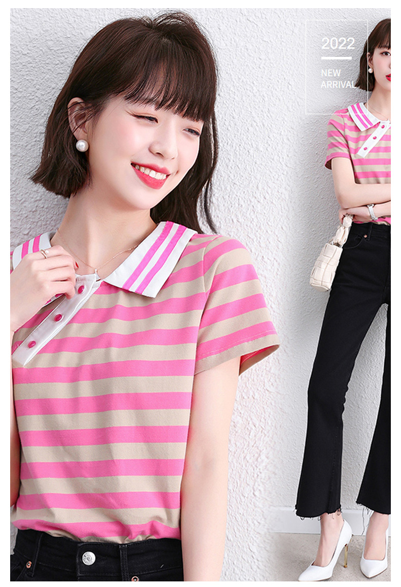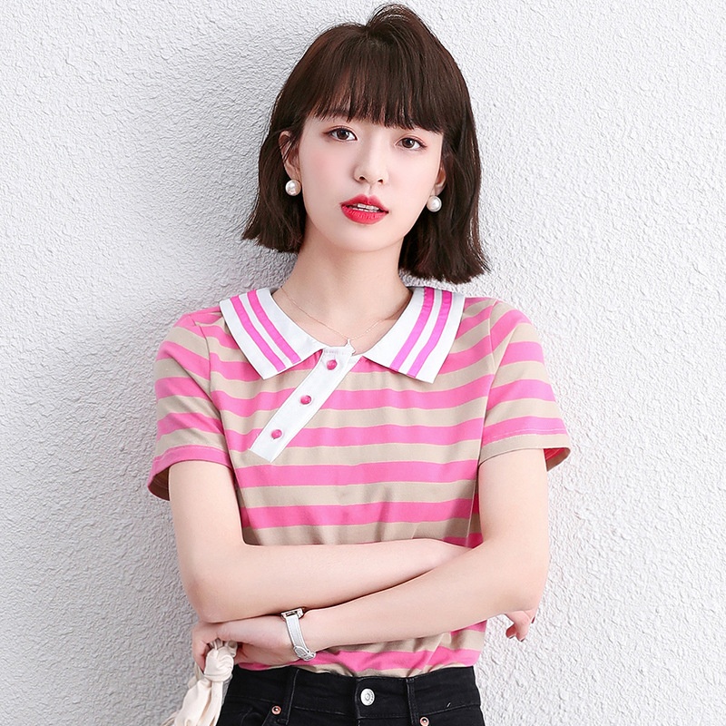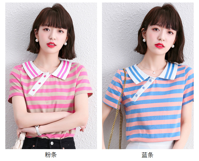 夏季新款洋气减龄修身显瘦彩虹条POLO领短袖薄款针织衫小众上衣女
