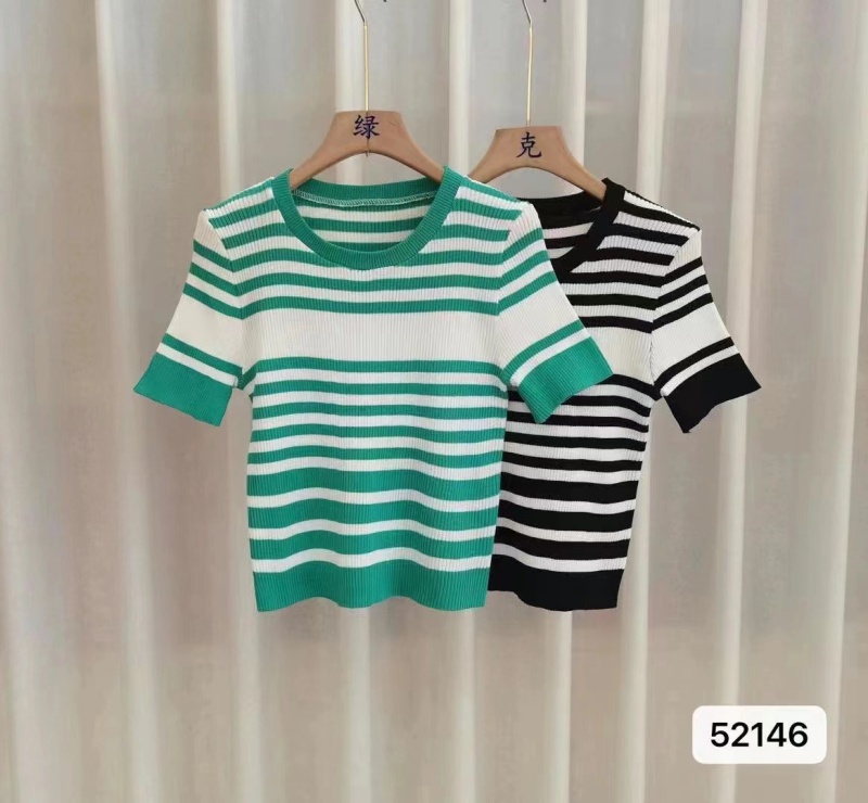 炸街上衣简约风夏季新款条纹薄款修身显瘦圆领冰丝针织衫轻奢小众