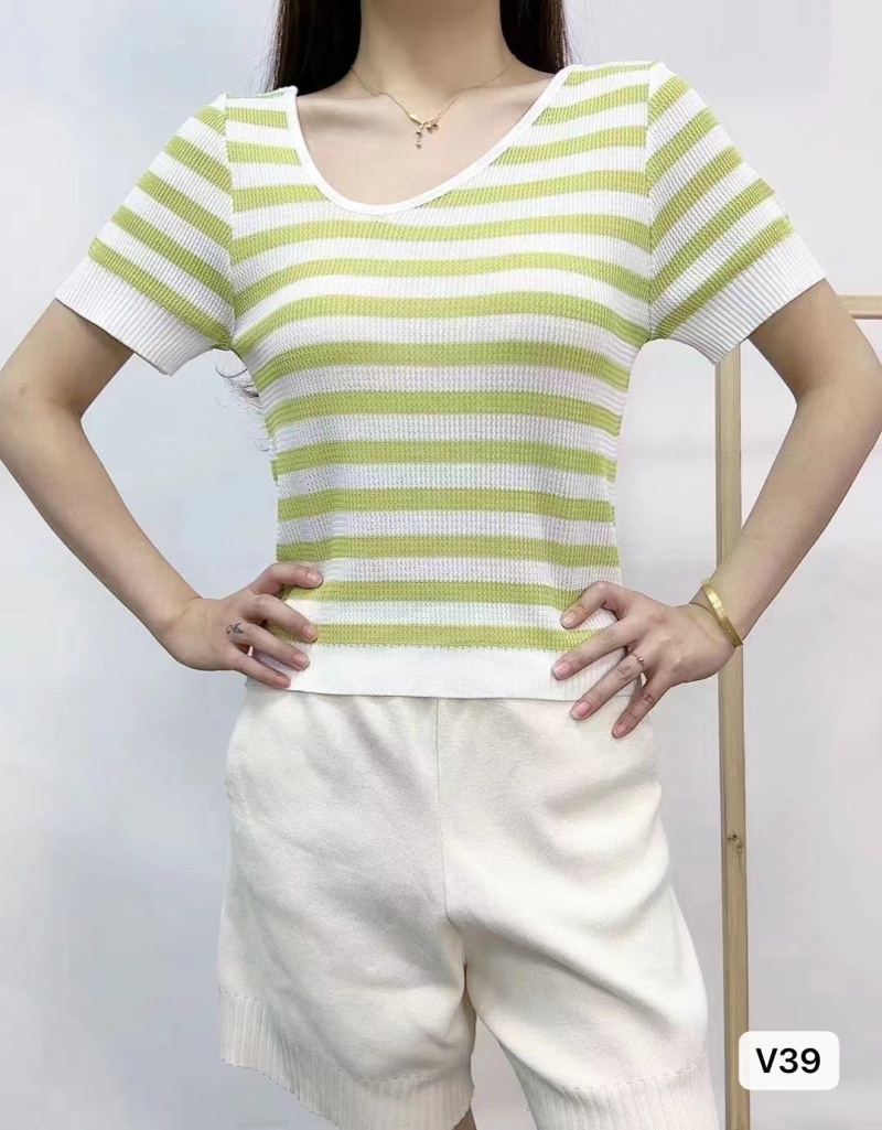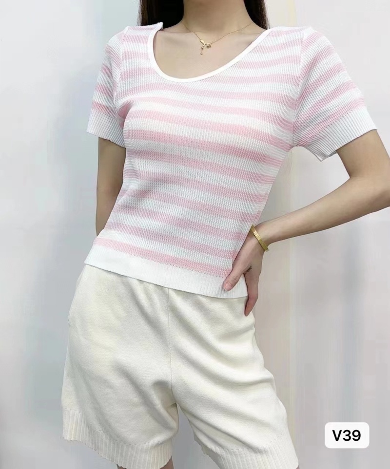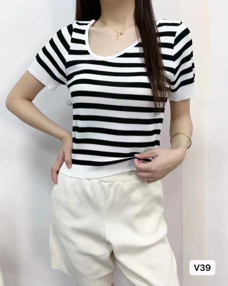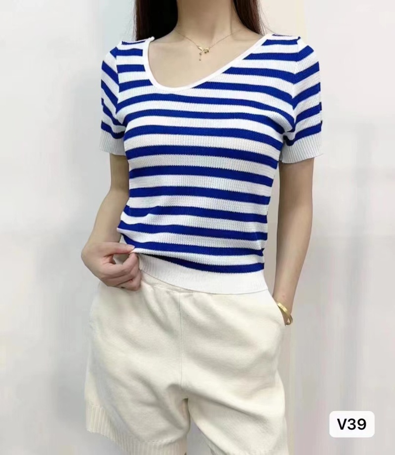 条纹短袖t恤女夏季2023新款内搭针织衫打底衫方领上衣设计感小众1