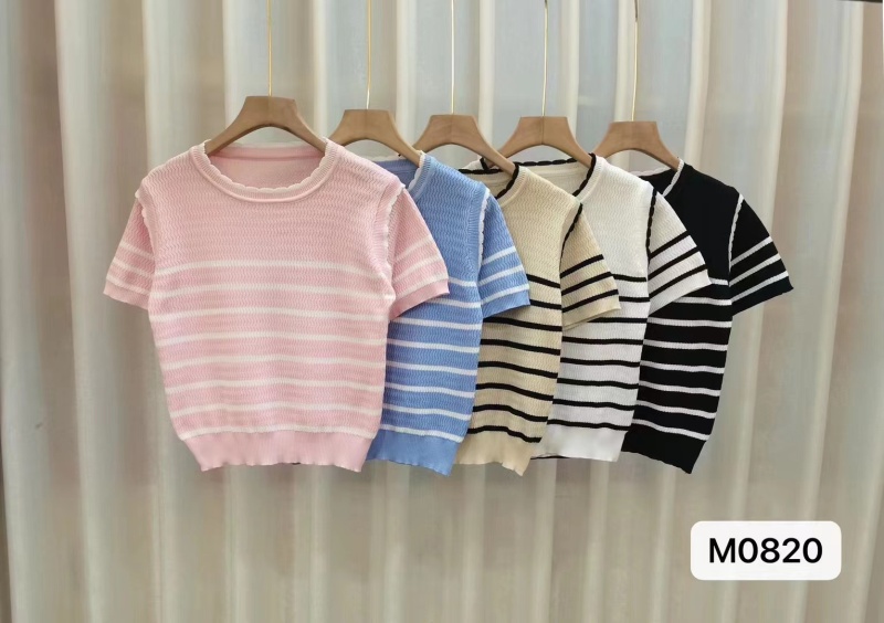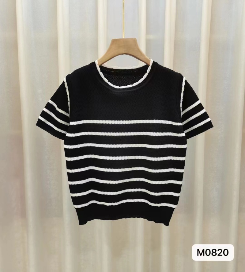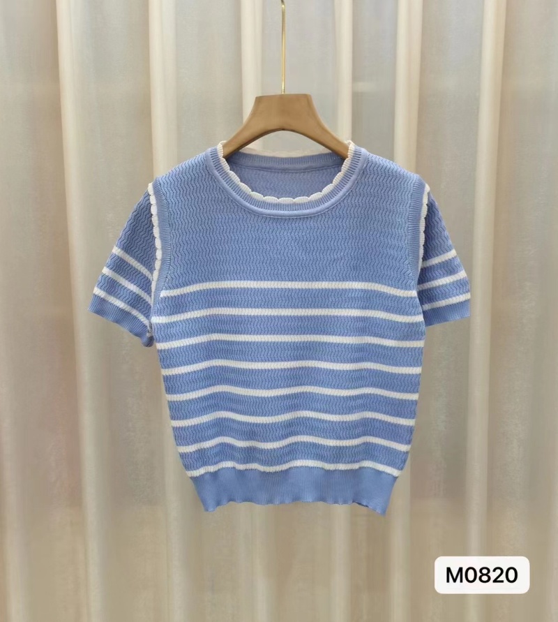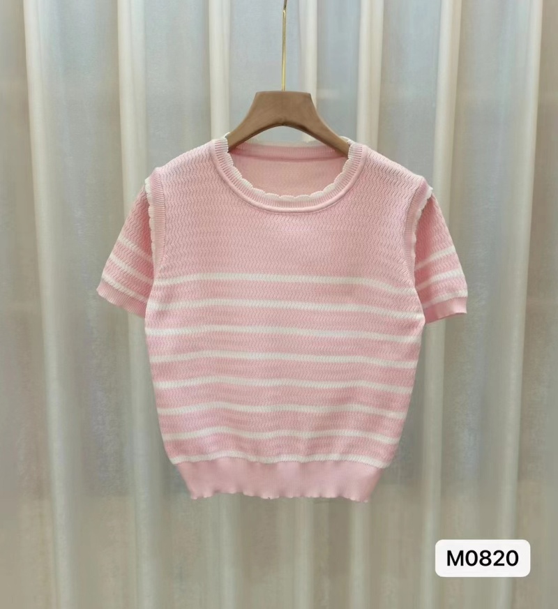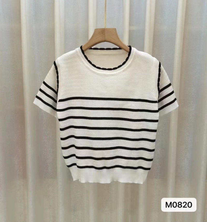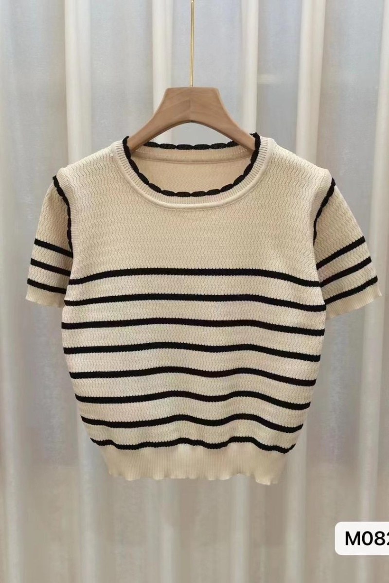 新款圆领短袖冰丝针织衫女2023夏薄款修身休闲通勤风百搭上衣潮新