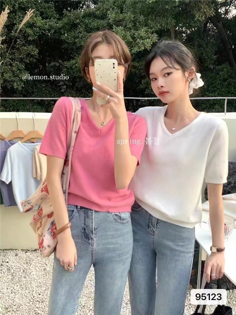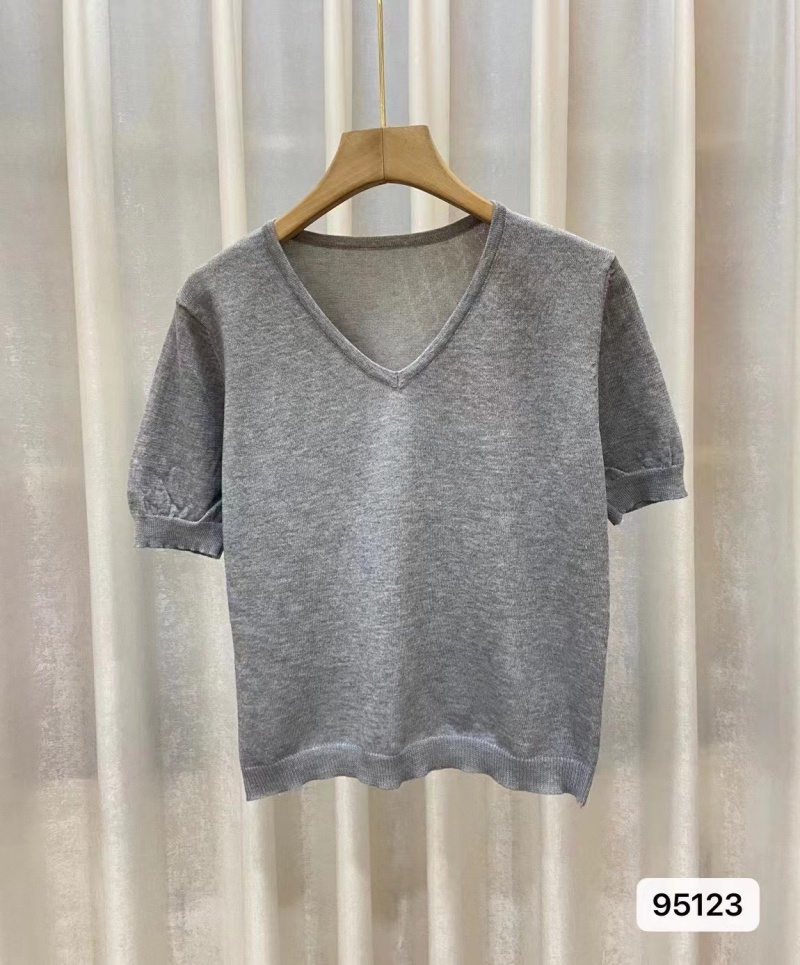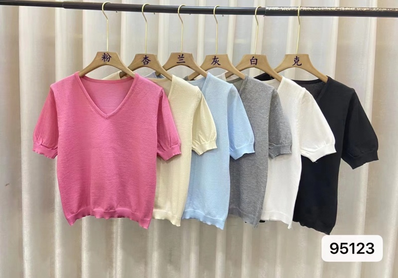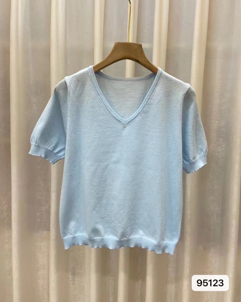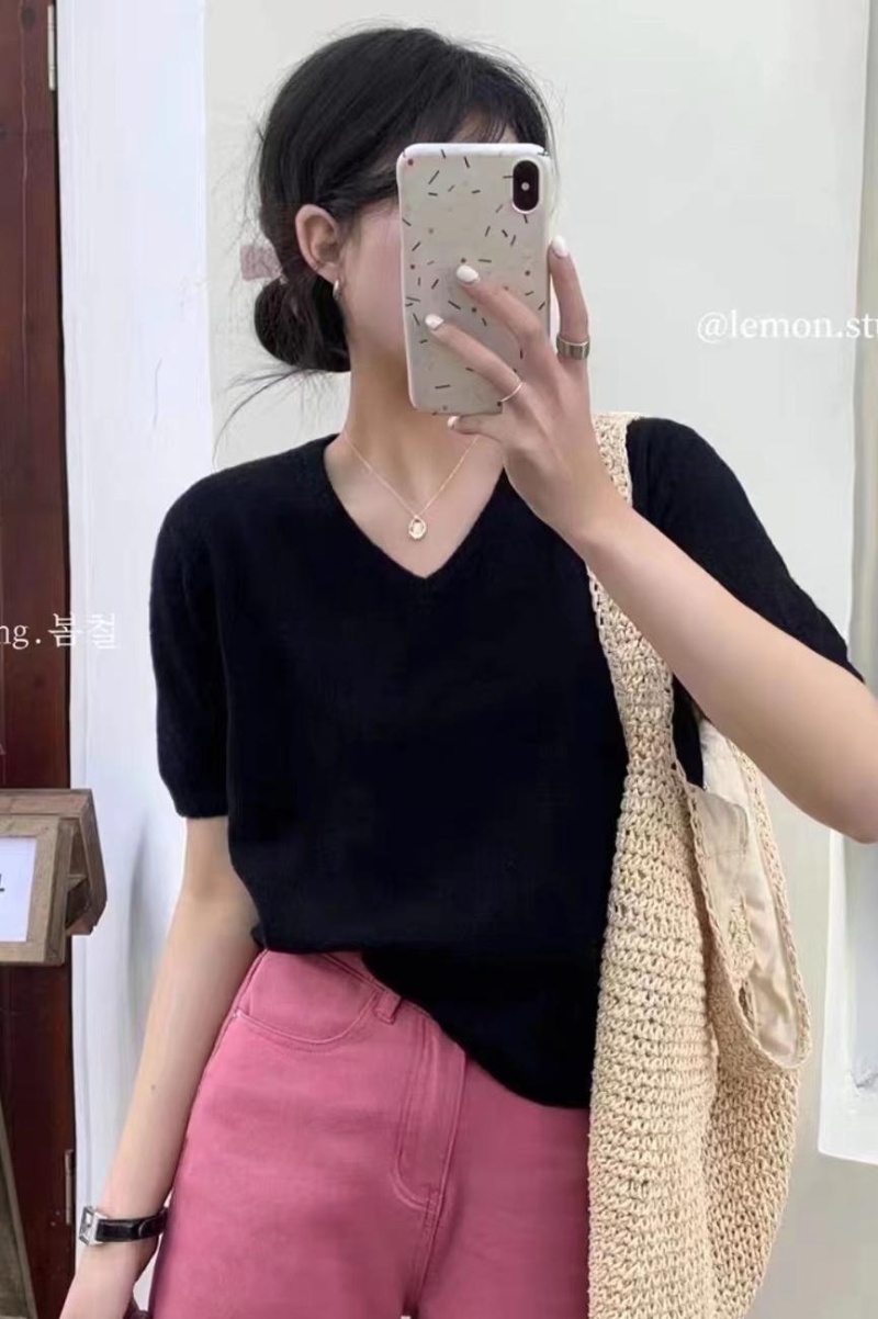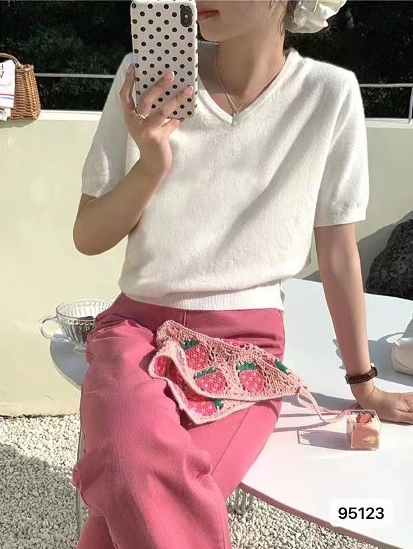 2023年夏季新款vV领针织衫正肩短袖女夏季2023短袖小衫百搭上衣潮