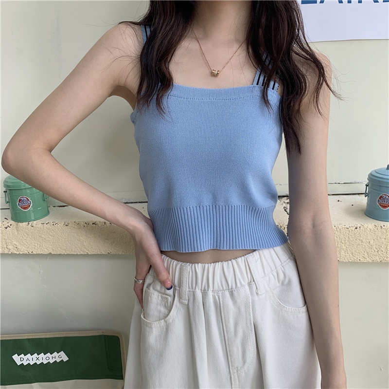冰丝小吊带无袖背心女夏外穿内搭宽松韩版短款v领针织打底衫上衣