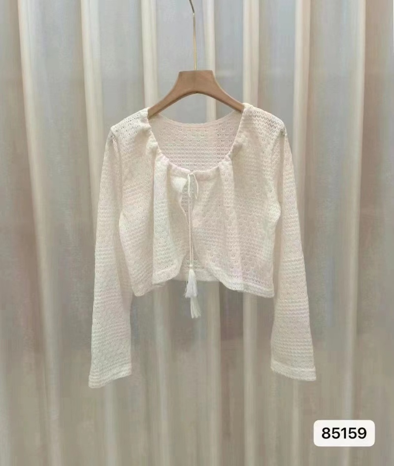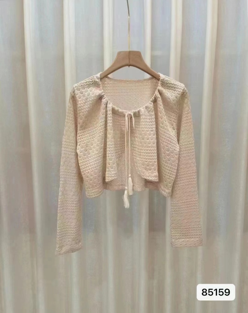 甜辣纯欲上衣女小个子春夏薄韩版显瘦吊带镂空系带长袖罩衫叠穿潮