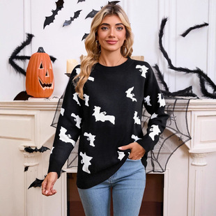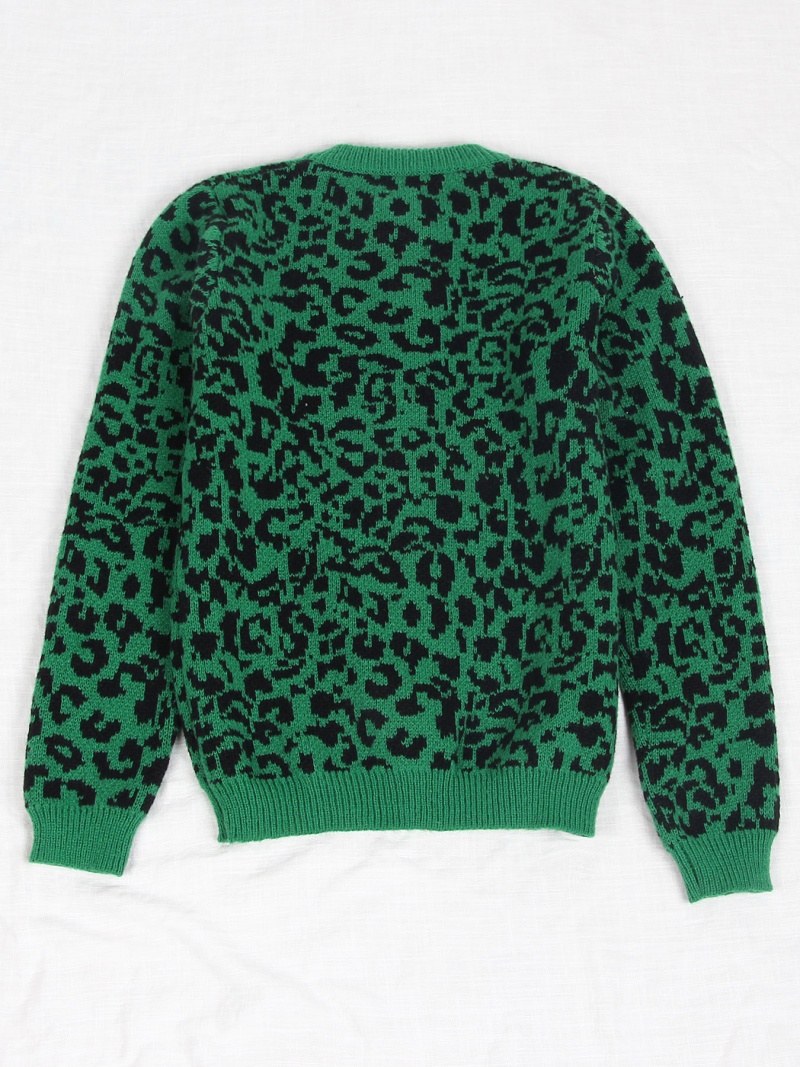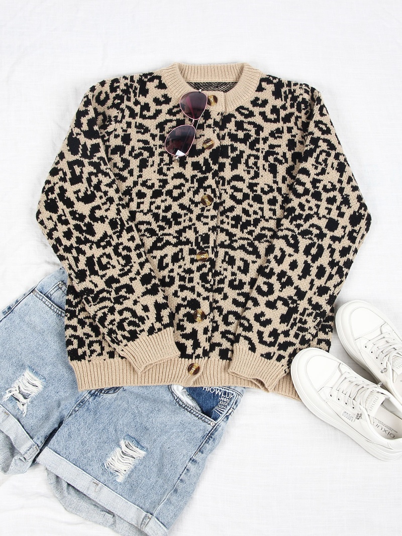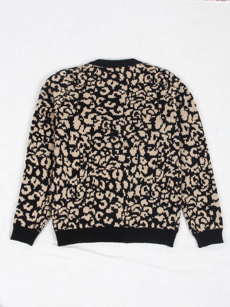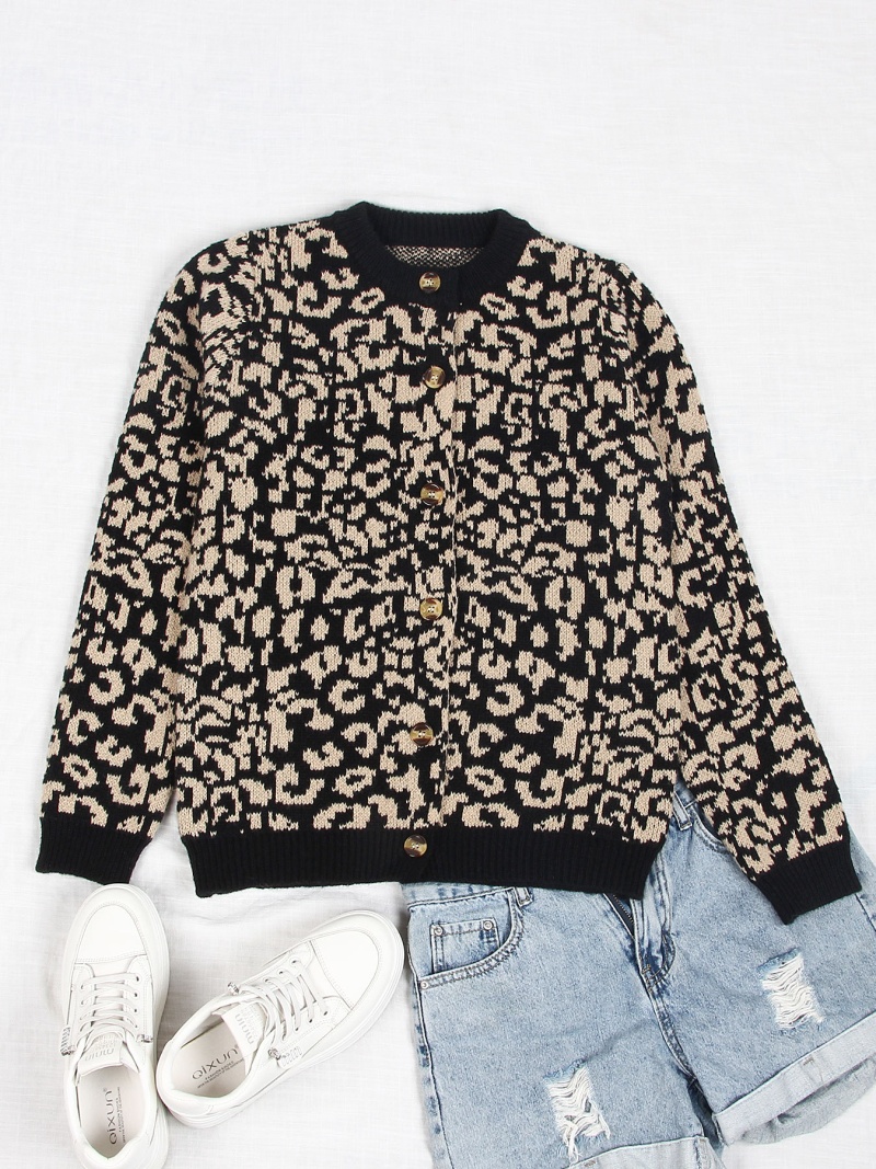 欧美新款秋冬毛衣女跨境宽松针织圆领长袖豹纹毛衣开衫外套