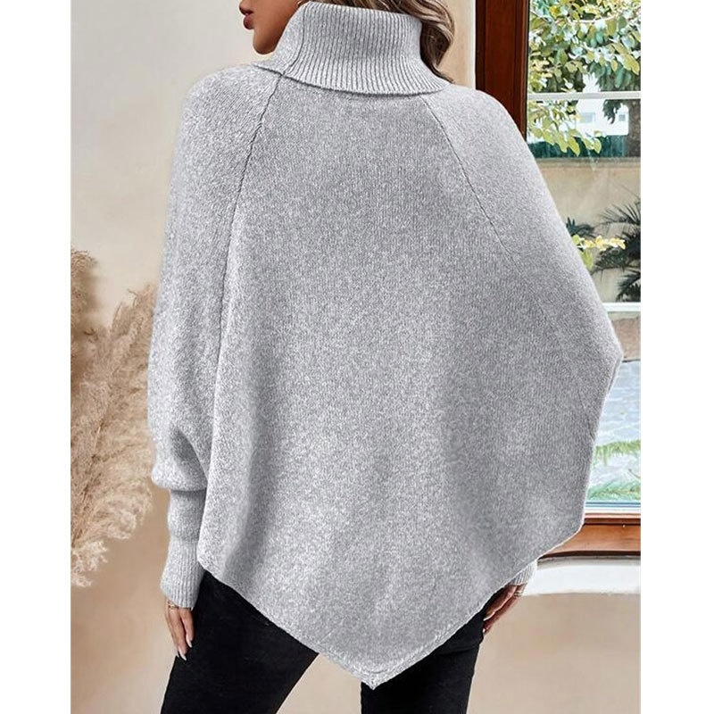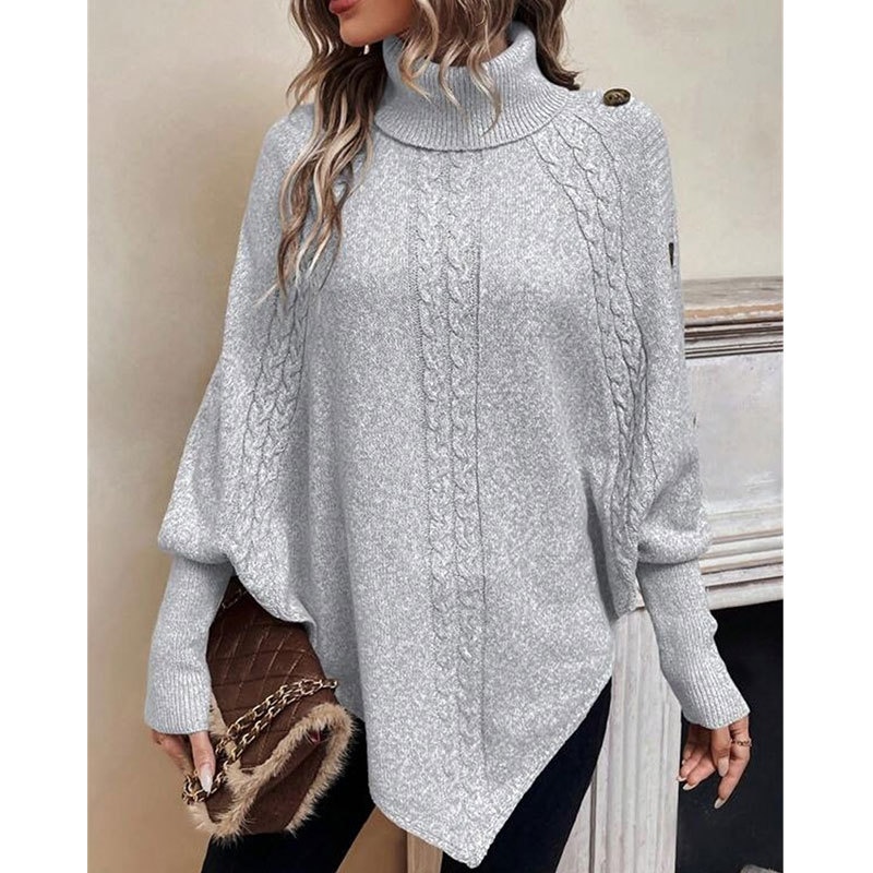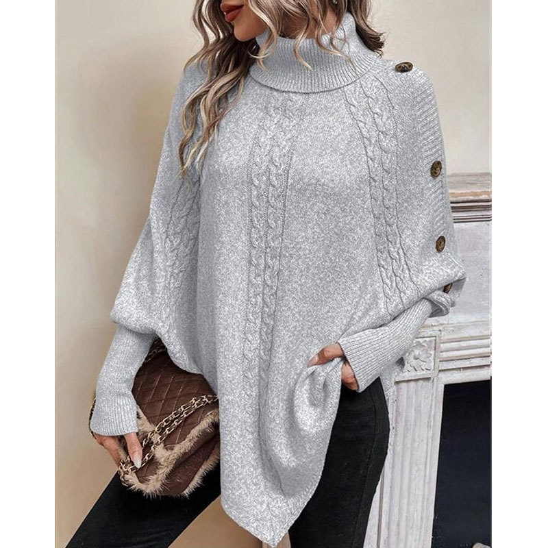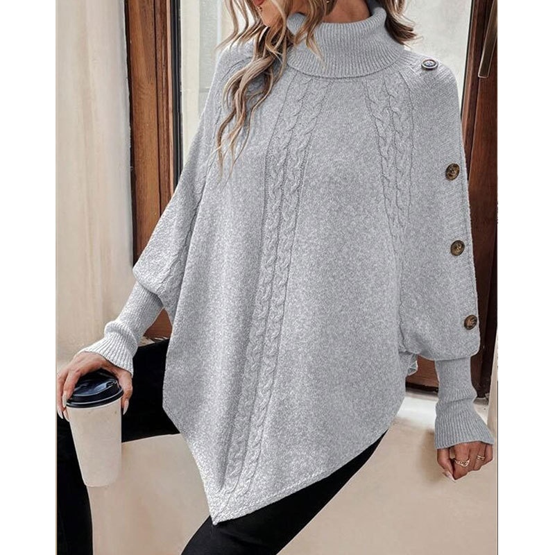 欧美秋冬新款毛衣女装跨境针织时尚绞花高领纽扣蝙蝠袖上衣
