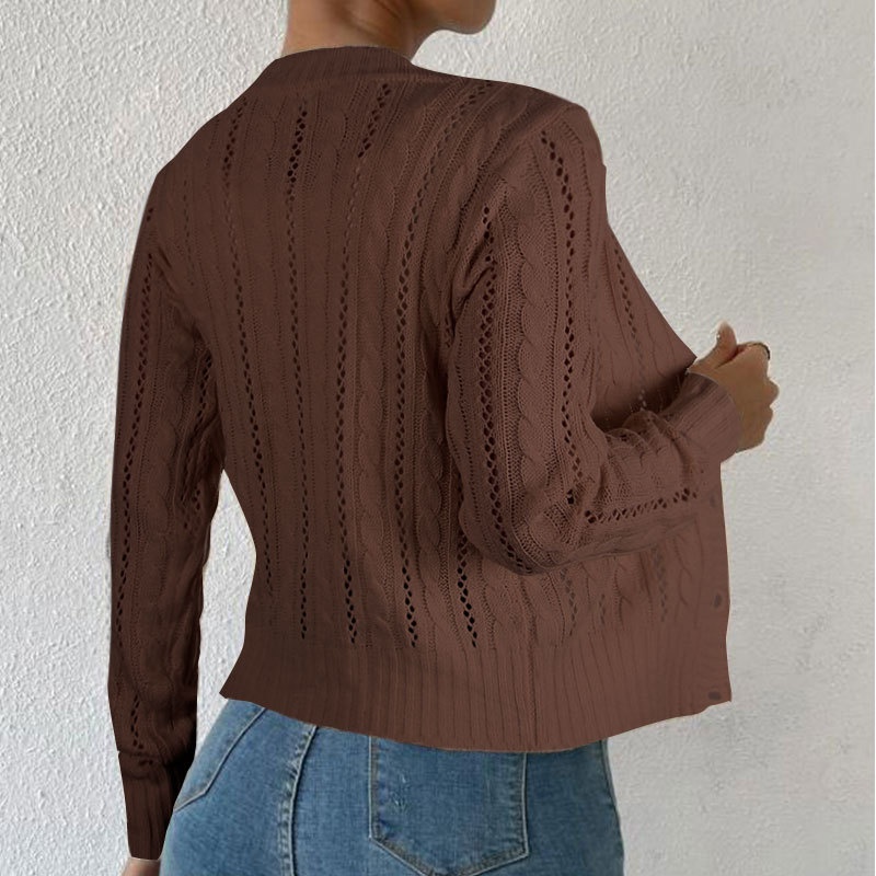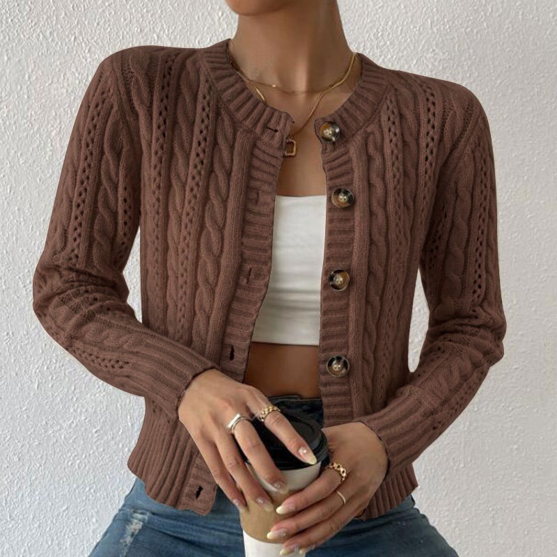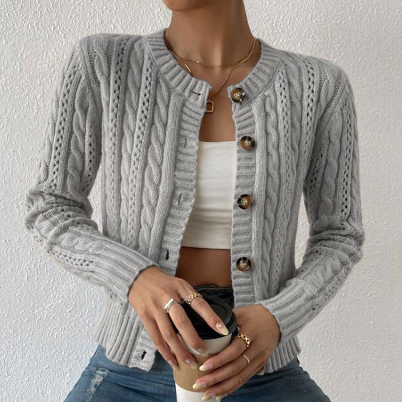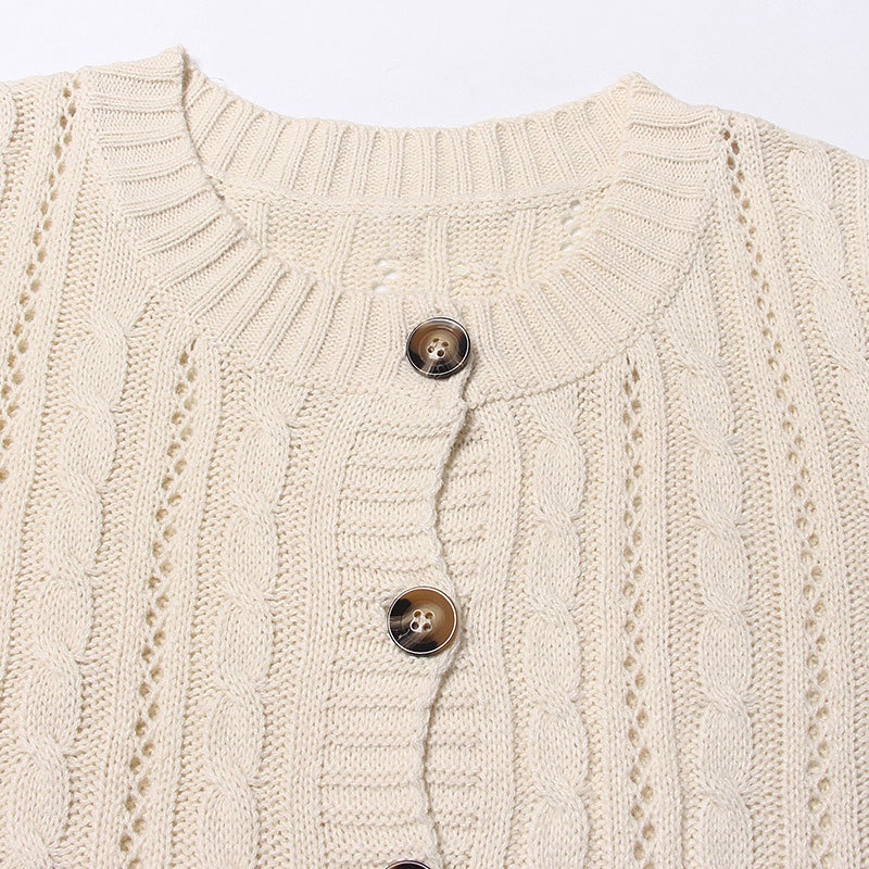 洋洋秋季毛衣女装欧美风跨境大码麻花圆领纽扣开衫长袖外套